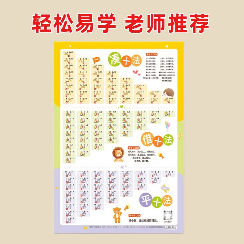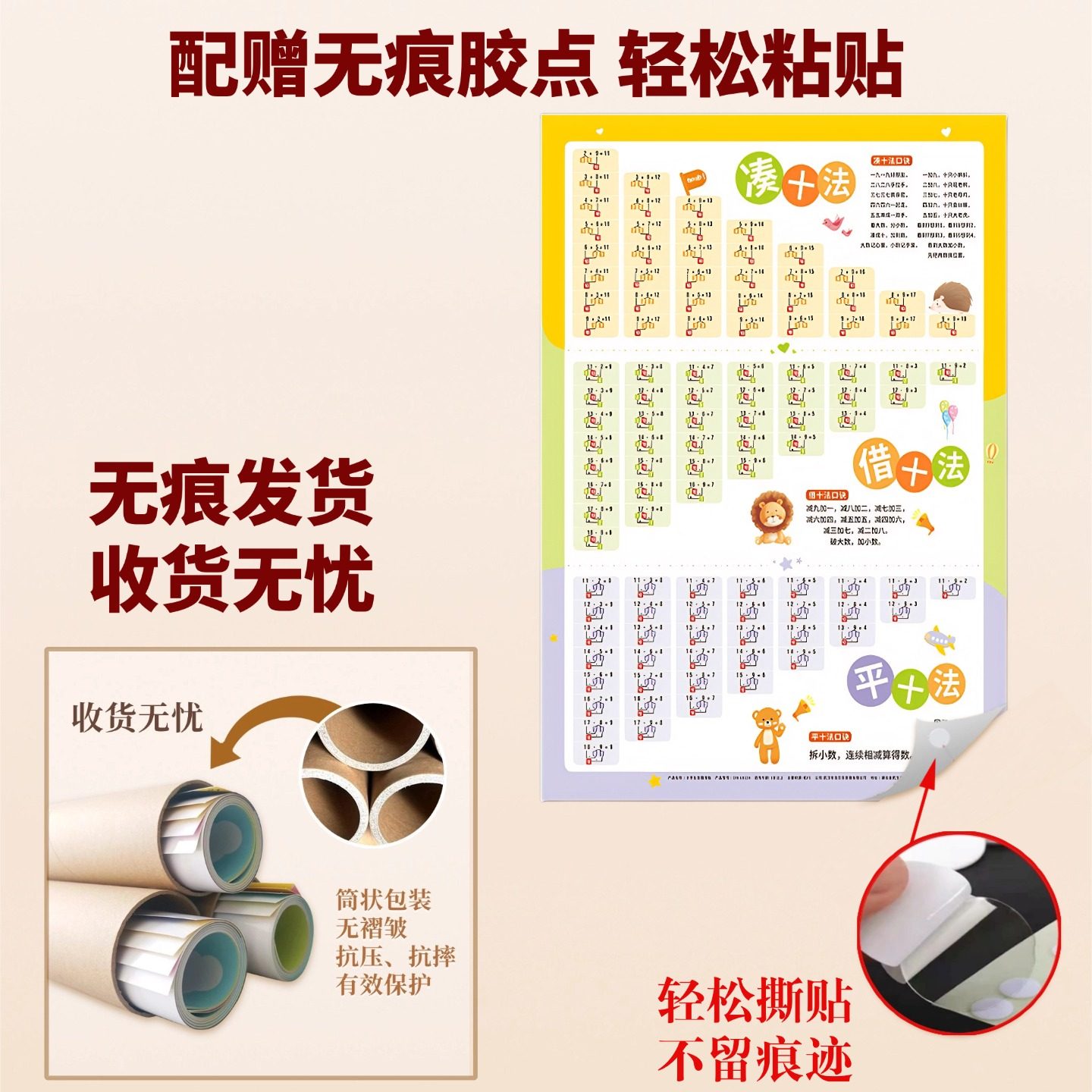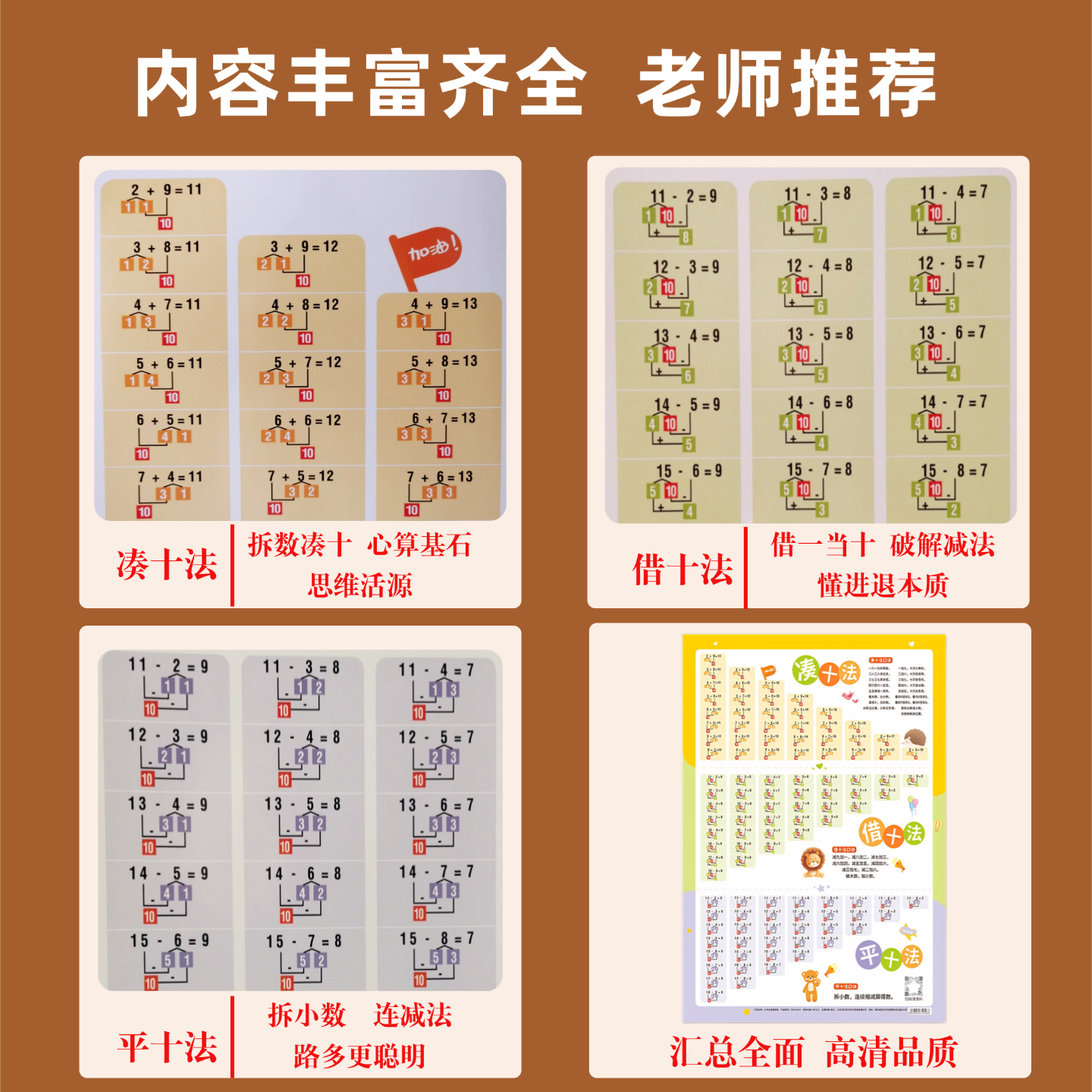 📚 10 20以内数的加减法口诀表凑十法借十法分解与组成儿童学习挂图