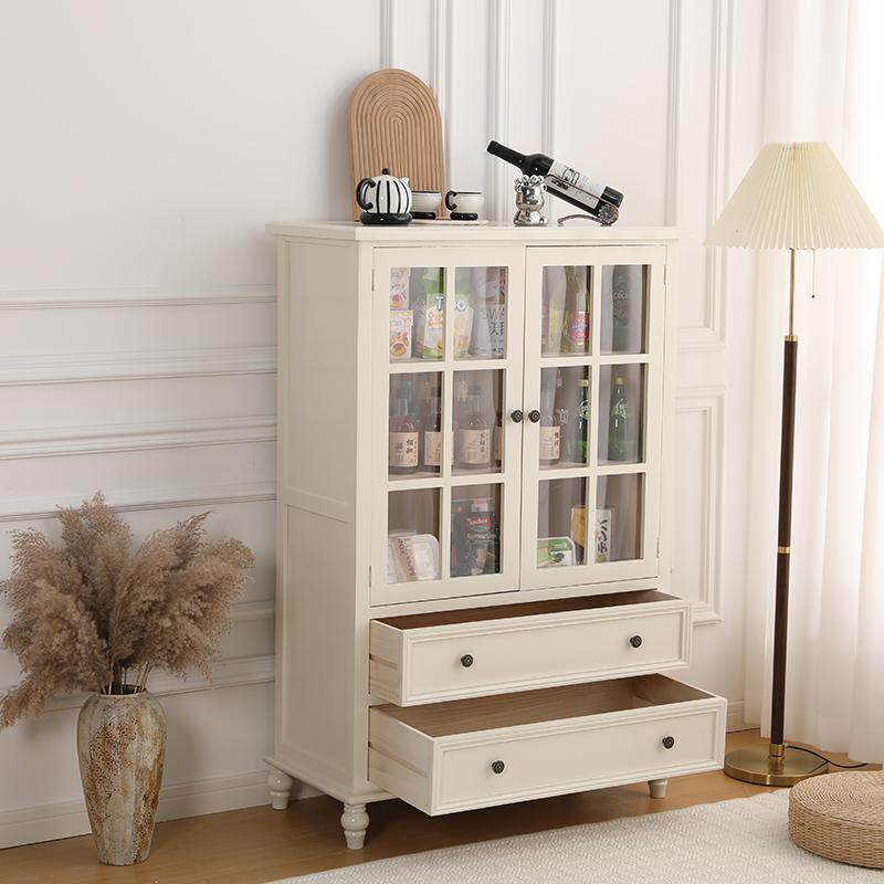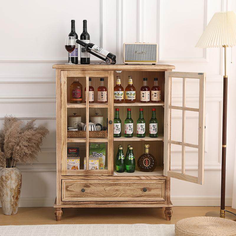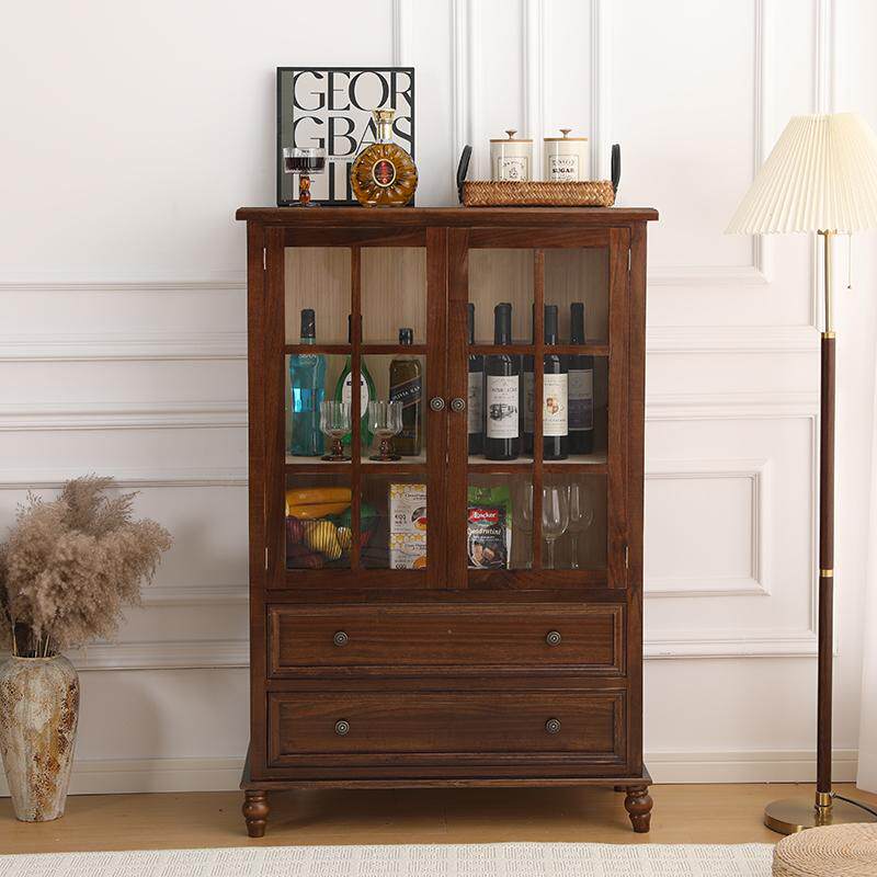 📚 美式酒柜实木餐边柜简约客厅靠墙角边柜双门储物柜复古收纳斗柜子