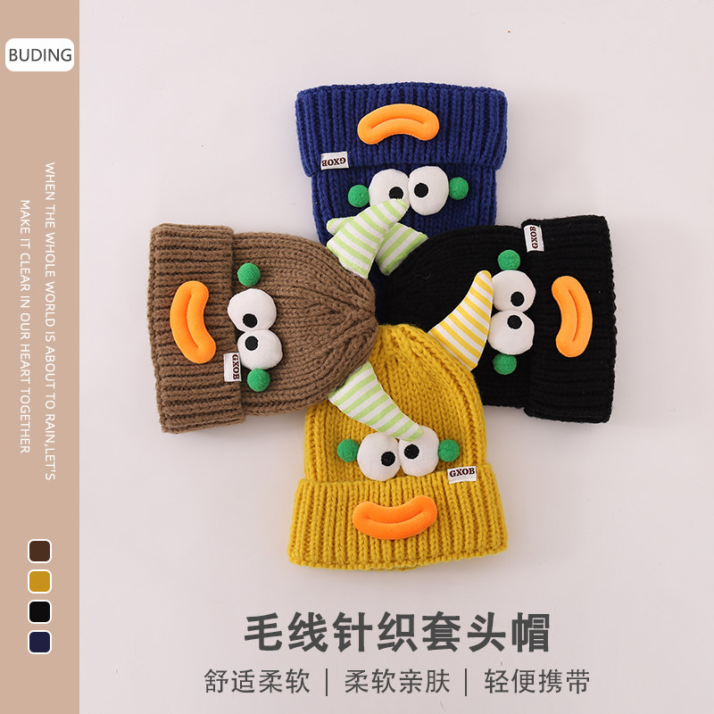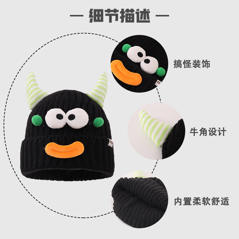 📚 儿童帽子搞怪眼睛触角毛线帽冬天保暖宝宝针织帽男女童套头帽亲子