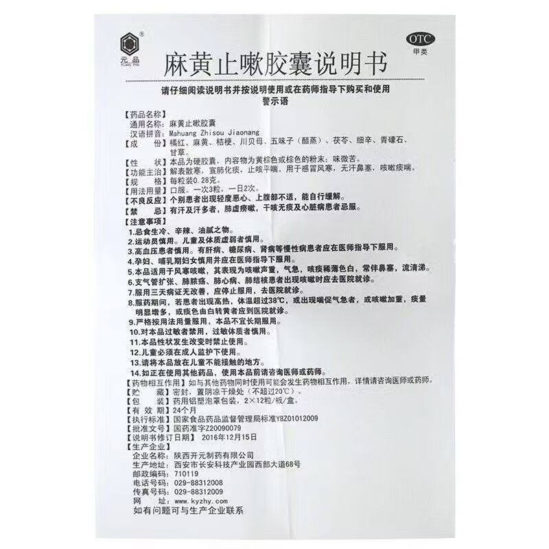 📚 元品 麻黄止嗽胶囊24粒咳嗽痰喘感冒风寒止咳平喘化痰鼻塞中成药