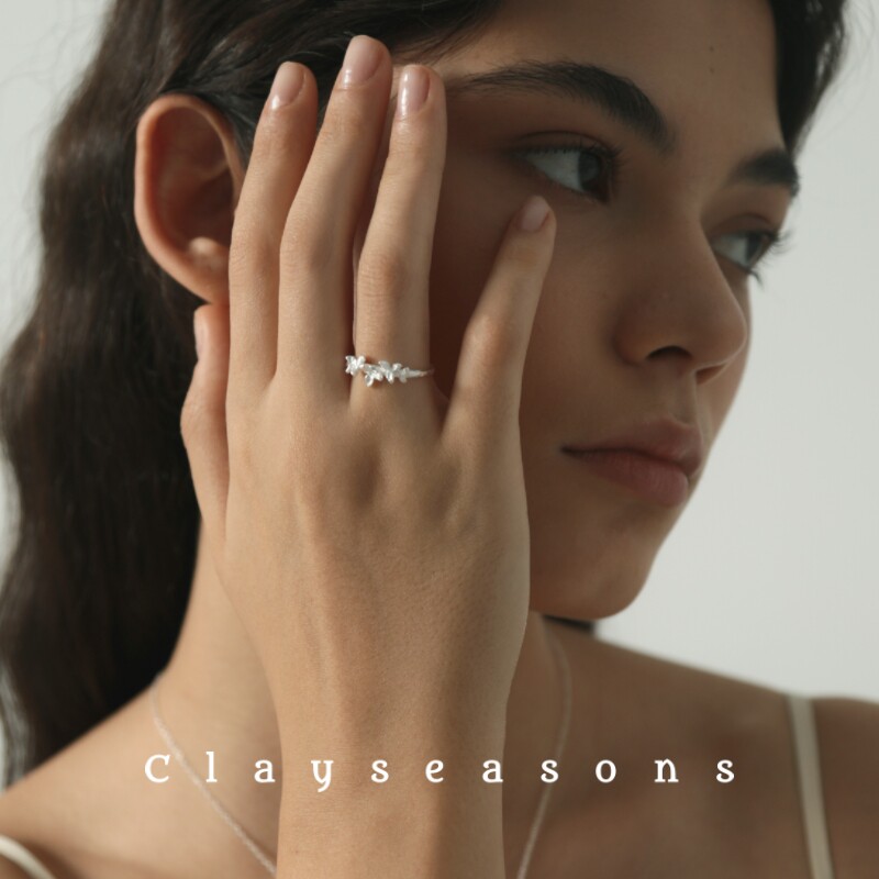 📚 Clayseasons丁香开口小花戒指 小众设计纯银手工肌理精致度假风