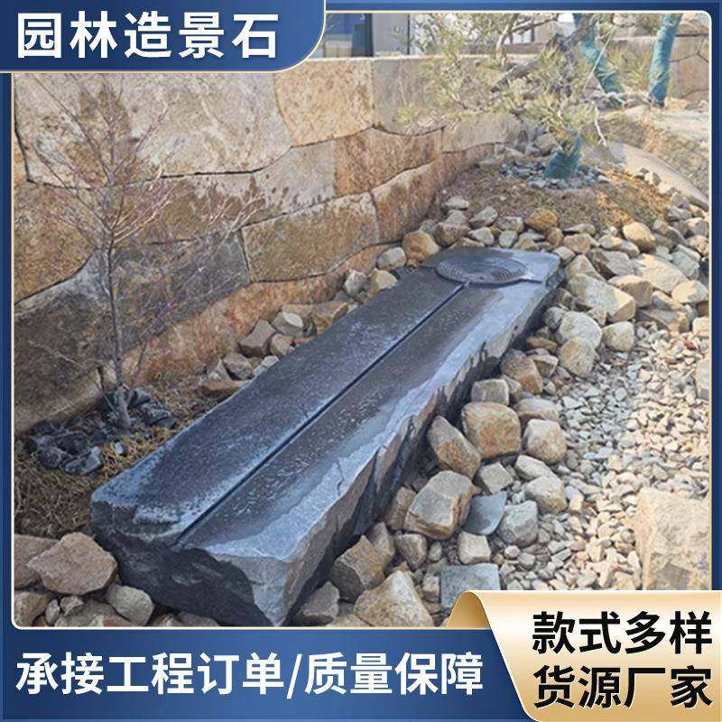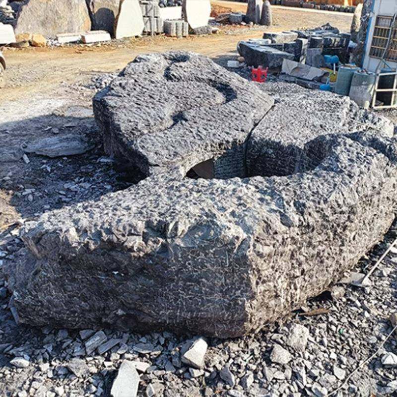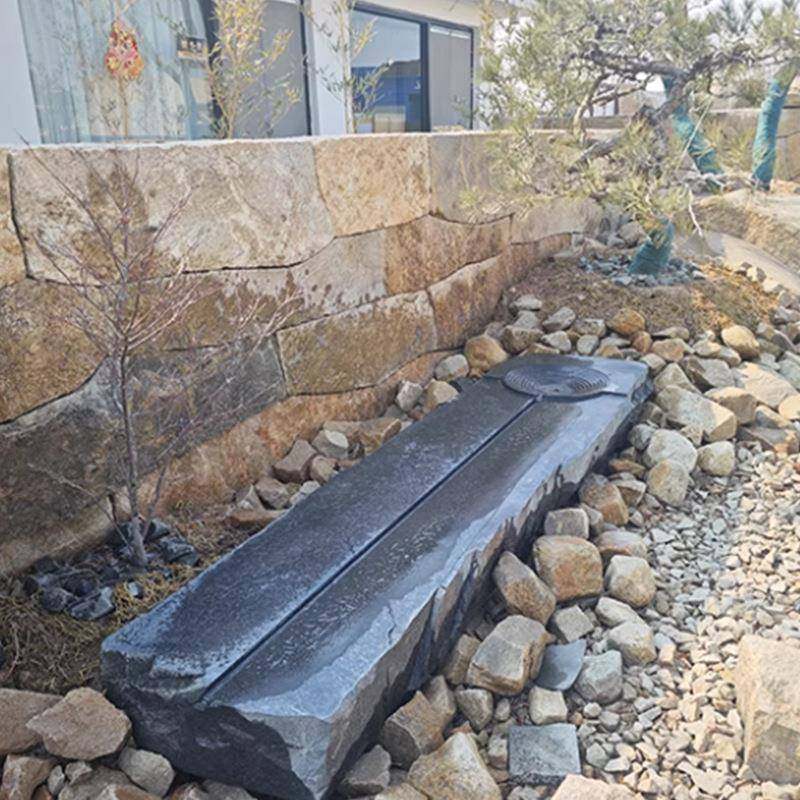 📚 黑山石水钵流水盆中式涌景观石泉水石雕喷水园林观景石异摆形景件