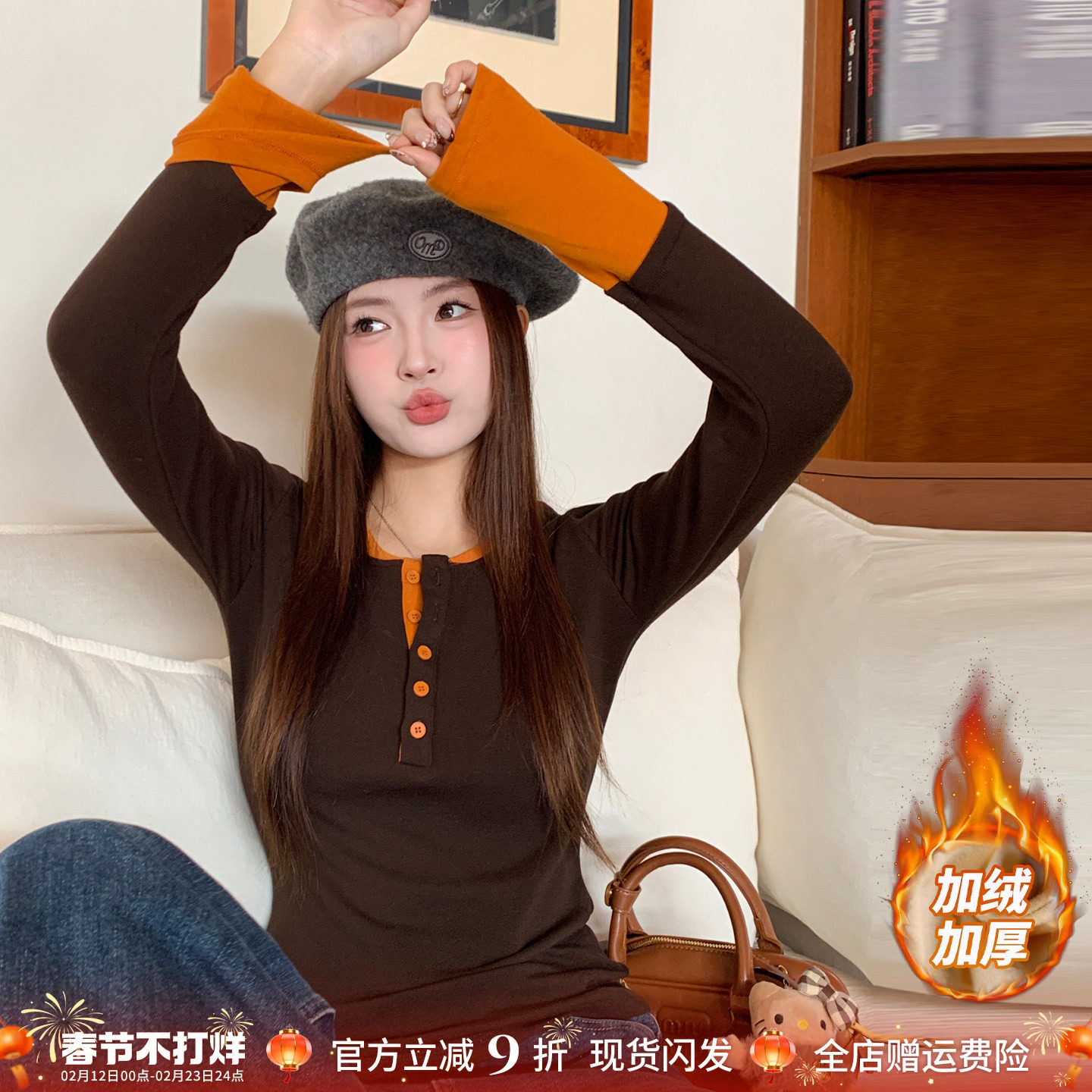 78¥ CA381 fa3NUnf9dIh¥ https://m.tb.cn/h.7CqYrjj 龙妹家加绒加厚打底衫女内搭2025冬季新款长袖T恤磨毛假两件上衣 --------------------- 【原售价】159.8元 【现售价】79.9元。