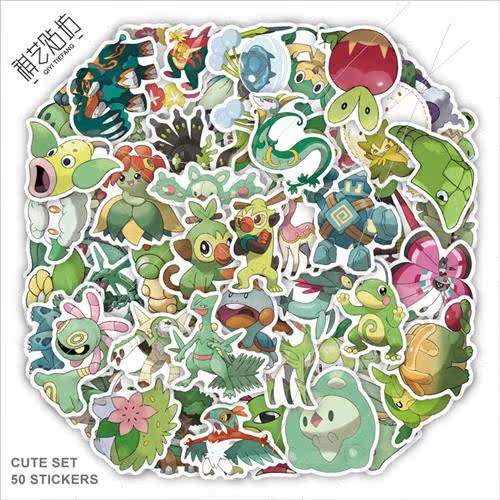 📚 60 new green Pokémon cute stickers decorative handbook stat