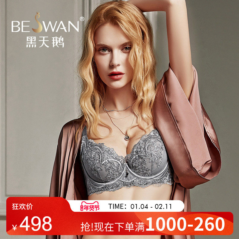 📚 黑天鹅夏季薄款蕾丝内衣女薄大胸显小文胸防下垂无钢圈收副乳胸罩
