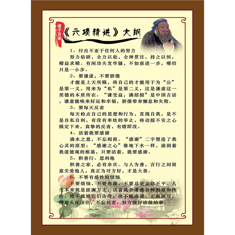 📚 六项精进大纲海报展板六项精进稻盛和夫6项精进墙贴墙纸装饰画