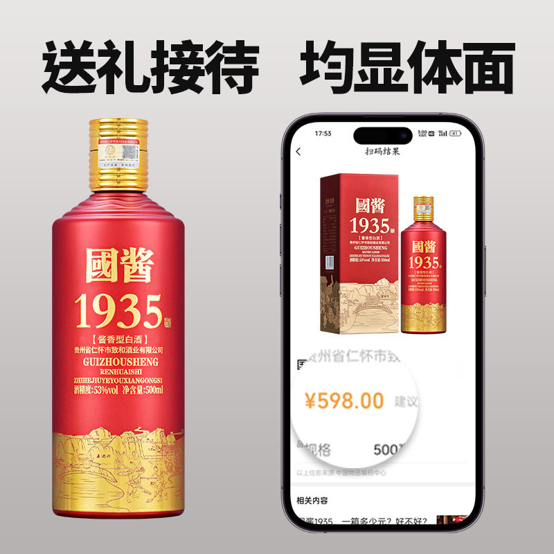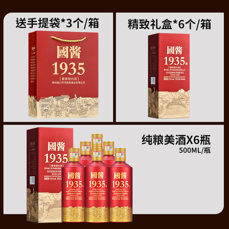 📚 贵州国酱1935酱香型白酒53度粮食酒口粮酒原浆高度老酒整箱礼盒装