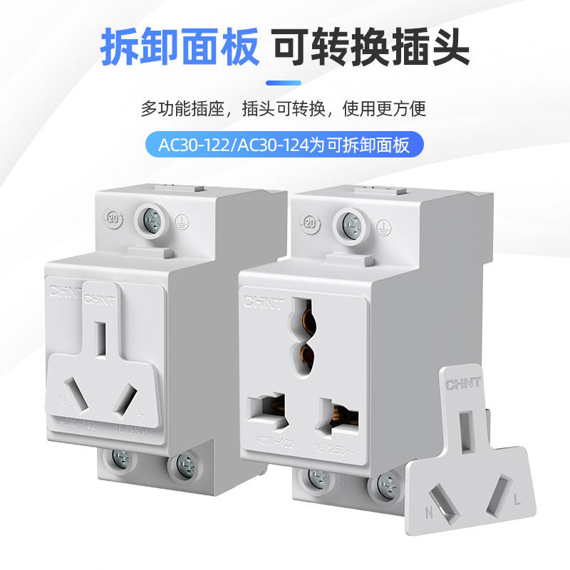 📚 正泰模数化插座AC30二三插多功能插座10A五孔卡导轨配电箱插座16A