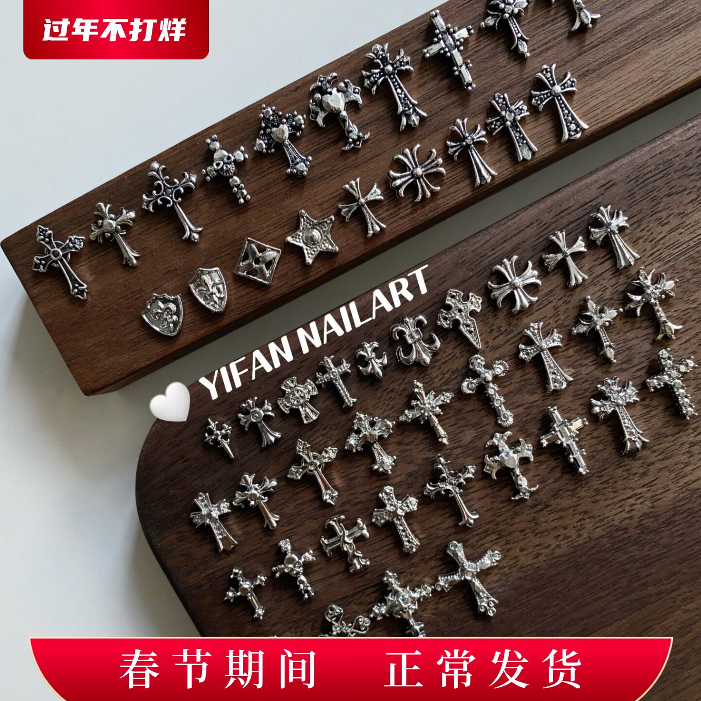 📚 YIFANNAIL 辣妹金属 古银克罗心 白金十字架美甲饰品E22