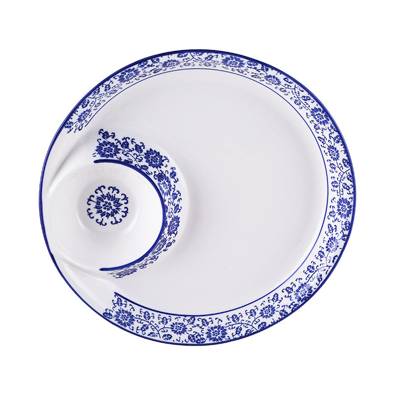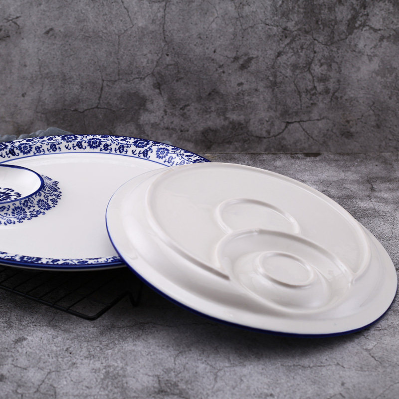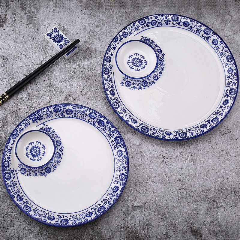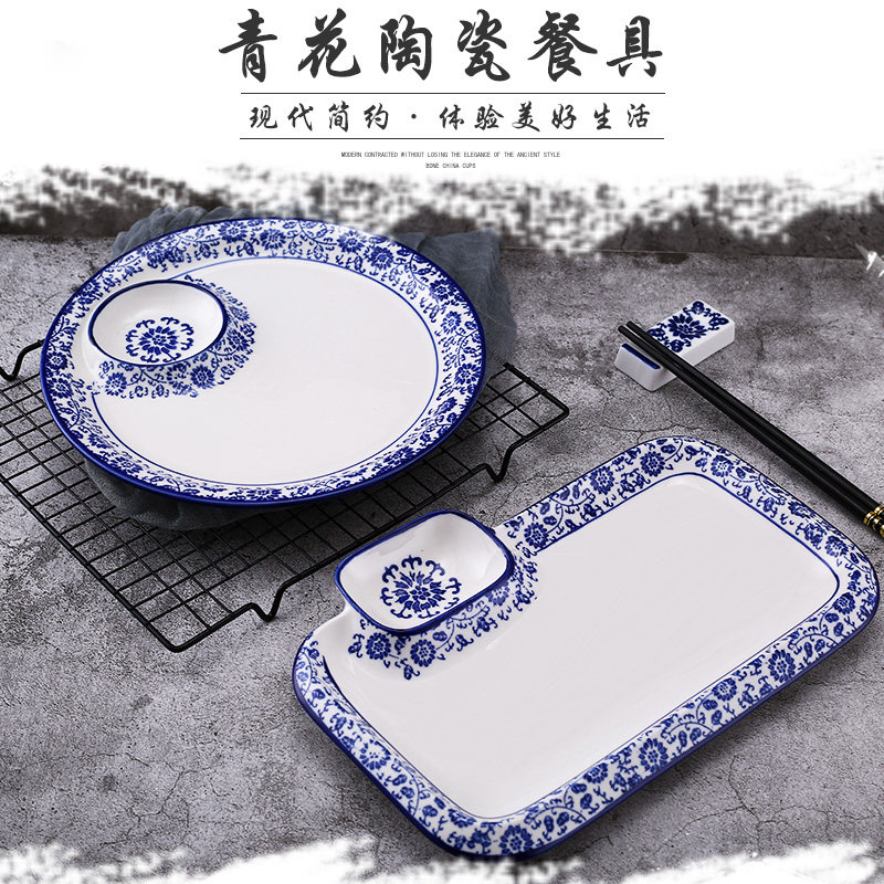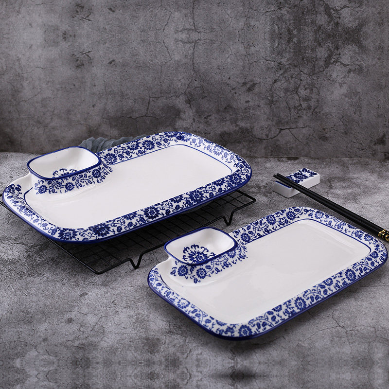📚 青花陶瓷方圆形饺子盘家用创意分格盘酒店凉菜盘子料理寿司子母盘