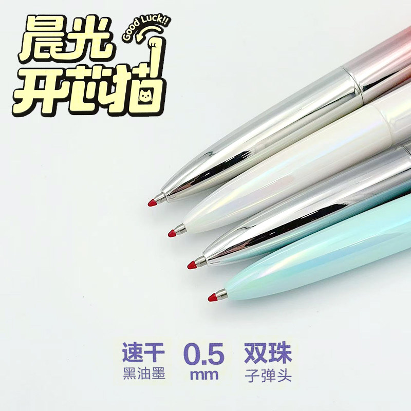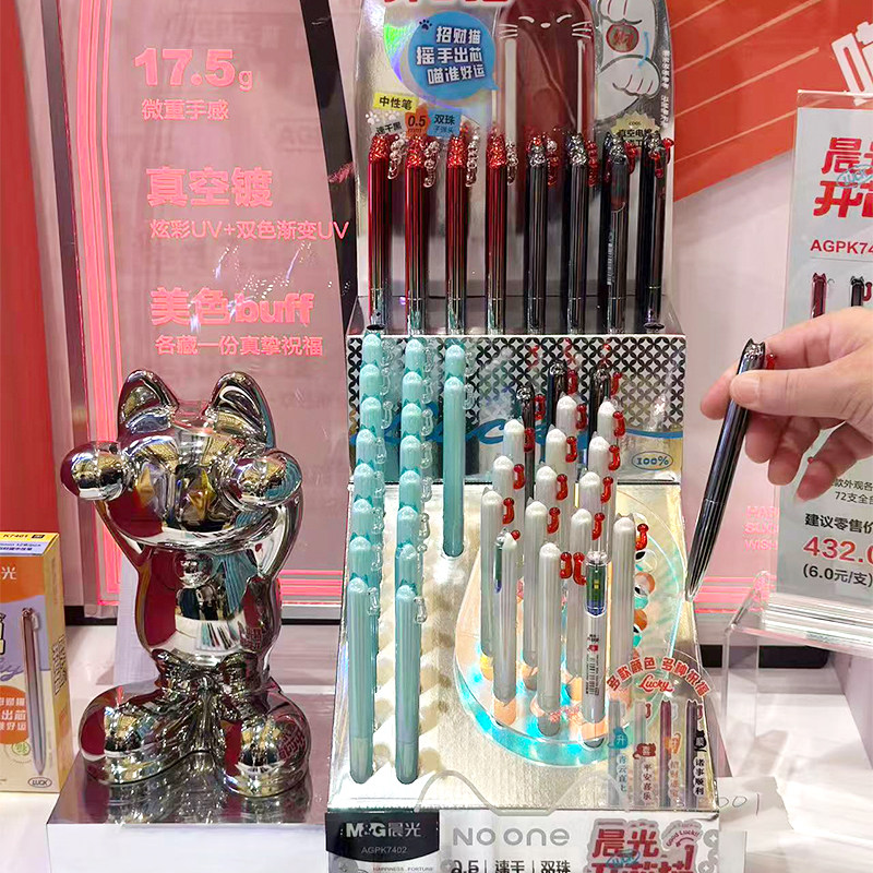 📚 晨光开芯猫中性笔招财猫摇手出芯电镀渐变工艺0.5mm速干黑色水笔双珠子弹头学生刷题专用笔AGKP7401