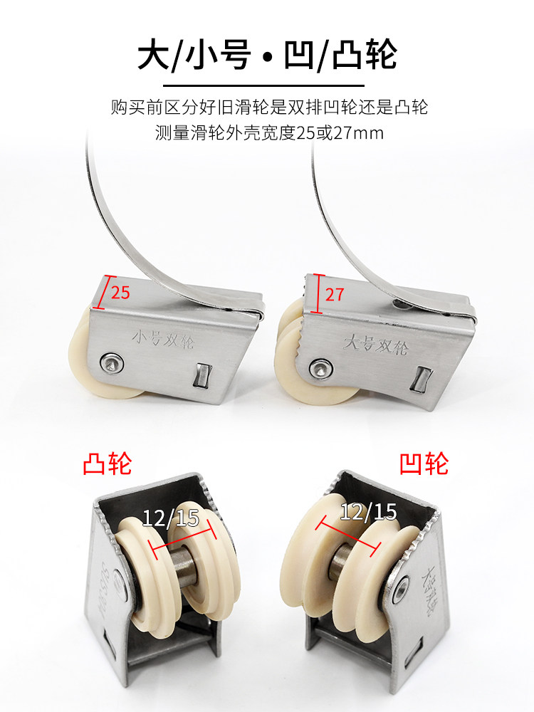 📚 移门双排滑轮老式推拉门窗户滚轮衣柜门滑轮并排双凸轮304不锈钢