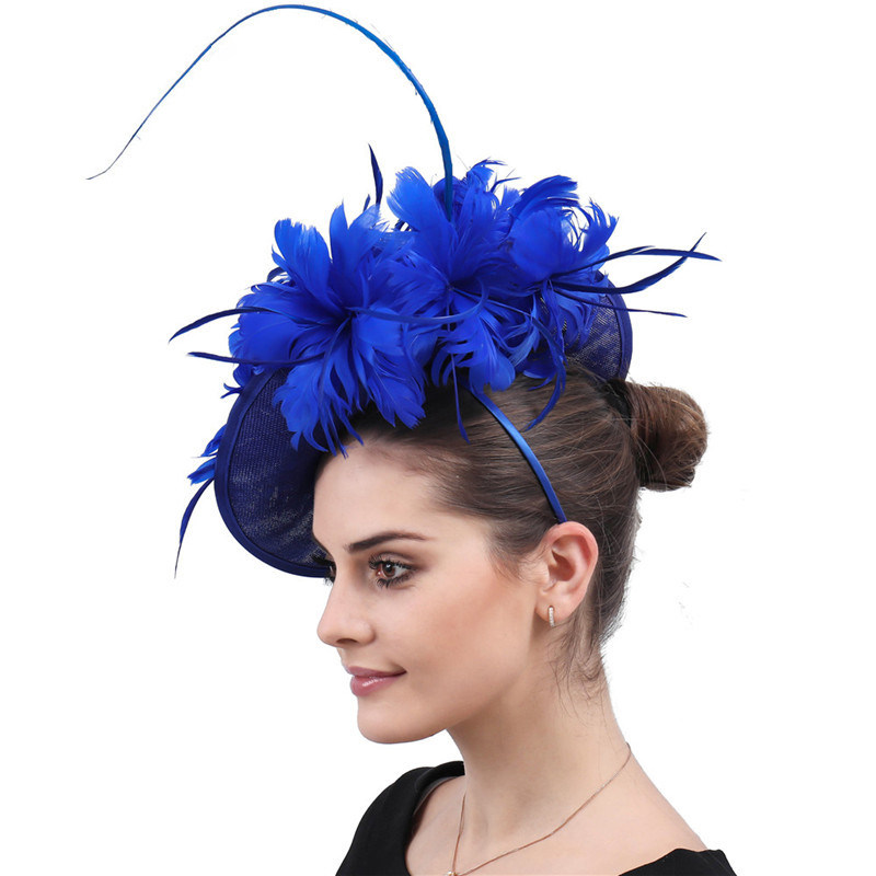 📚 旗左 宴会礼帽赛马节夸张羽毛礼服帽舞台表演聚会发箍旗袍头饰
