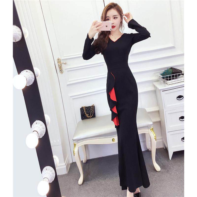 #晚女宴会 #气质拼色V领荷叶边包臀鱼尾裙 #夏日女神必备 #券后价入手 #女神必备单品