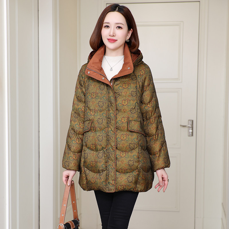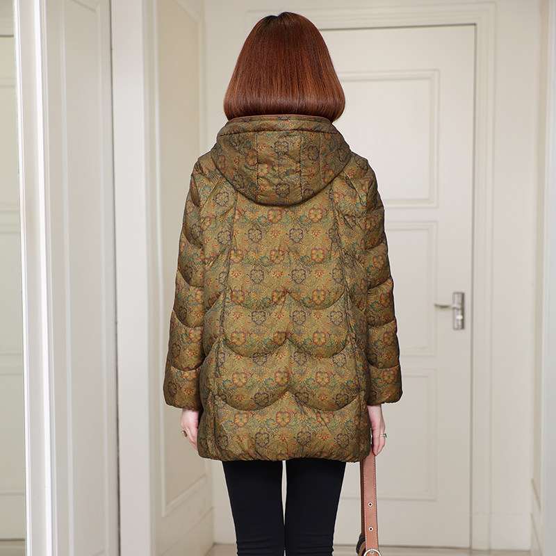 这款羽绒服采用了民族风印花设计,给人一种时尚又不失优雅的感觉。而且连帽设计更是增添了一抹俏皮可爱的气息。中长款设计非常适合日常穿搭,无论是上班、逛街还是约会,都能轻松驾驭。