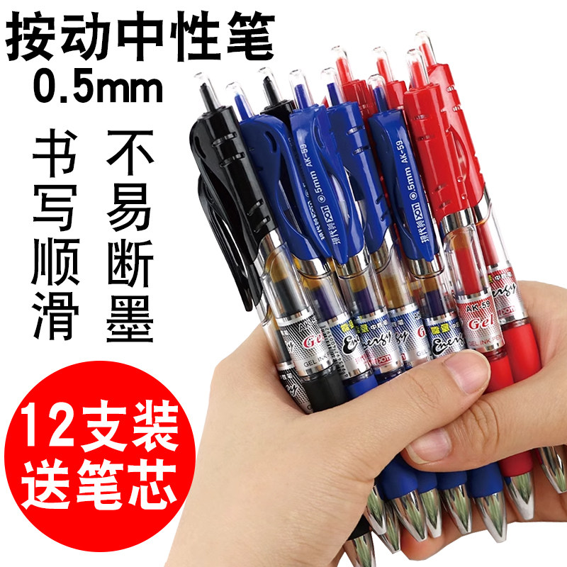 📚 中性笔按动式0.5mm黑色红色蓝色中性笔笔芯学生办公专用批发便宜