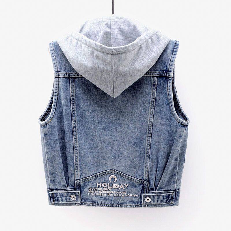 📚 短款连帽牛仔马甲女Korean version of short hooded denim vest