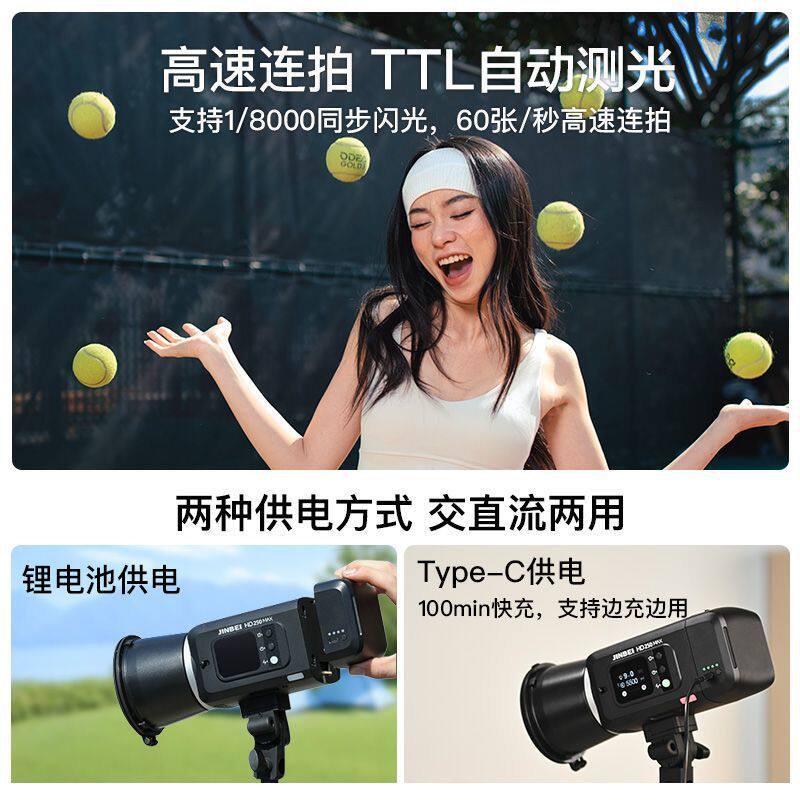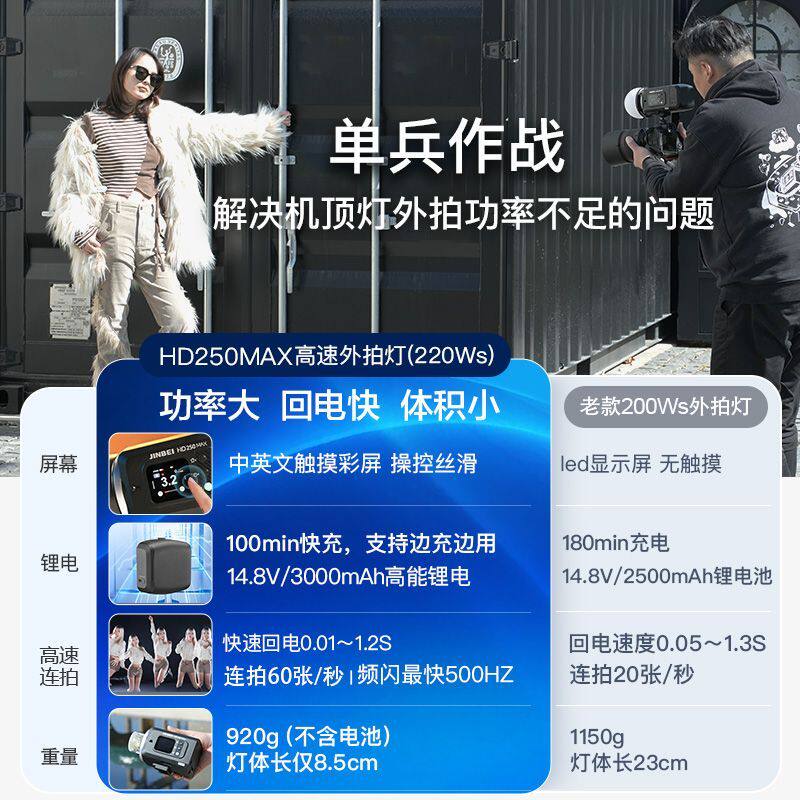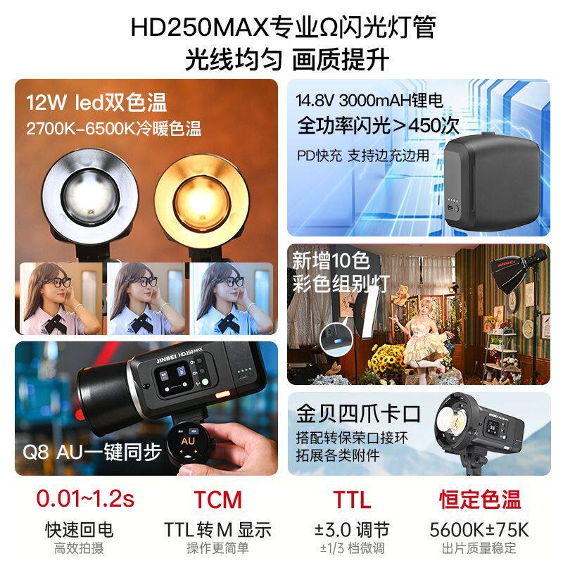📚 金贝HD250MAX便携高速220W外拍闪光灯连拍频闪触屏旅拍影棚补光灯
