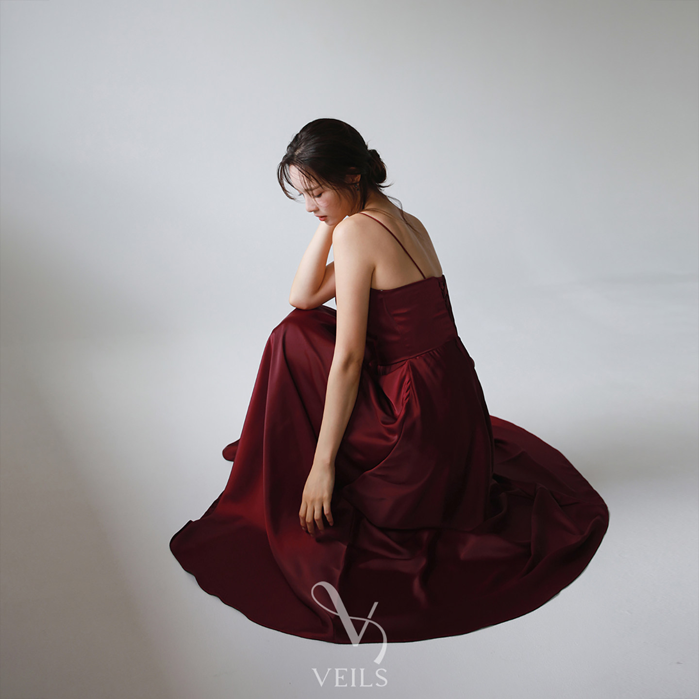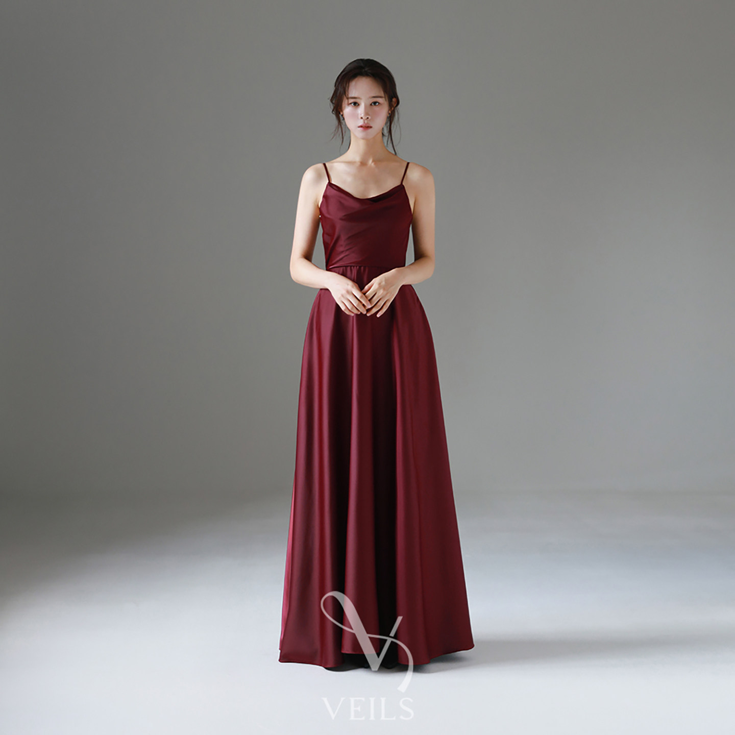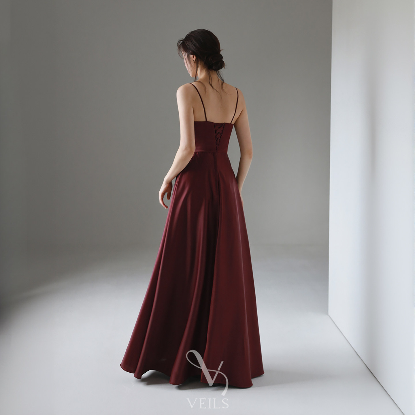 📚 Veils简约复古酒红色醋酸缎面修身显瘦吊带裙晚宴派对礼服敬酒服