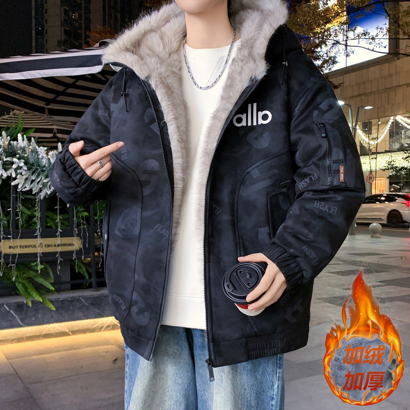 📚 冬装座山雕外套12岁男孩初中学生加厚棉衣15大童宽松棉袄休闲夹克