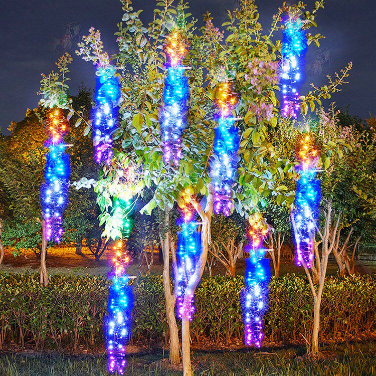 📚 新年彩灯太阳能鞭炮灯流水挂树木装饰灯串灯过年庭院花园区亮化灯