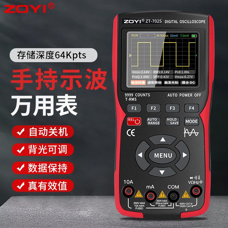 📚 众仪ZT702S示波表彩屏手持数字万用表示波器二合一多功能测量防烧