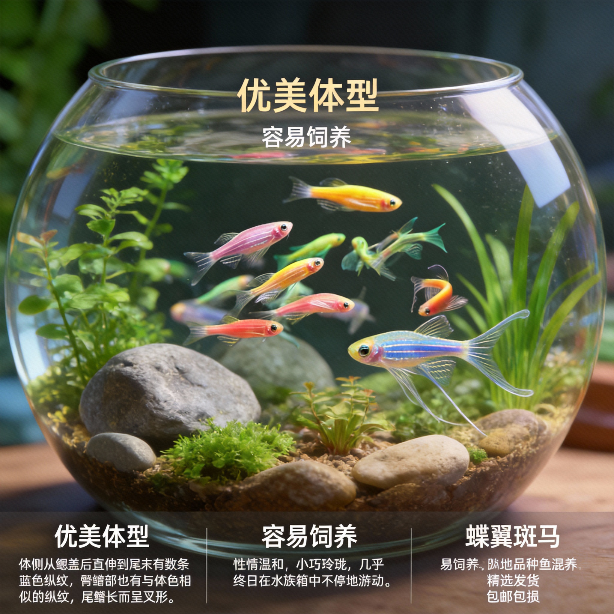 📚 热带观赏鱼红蓝斑马鱼小型金鱼苗观赏鱼蝶翼精品孔雀红绿灯科活体
