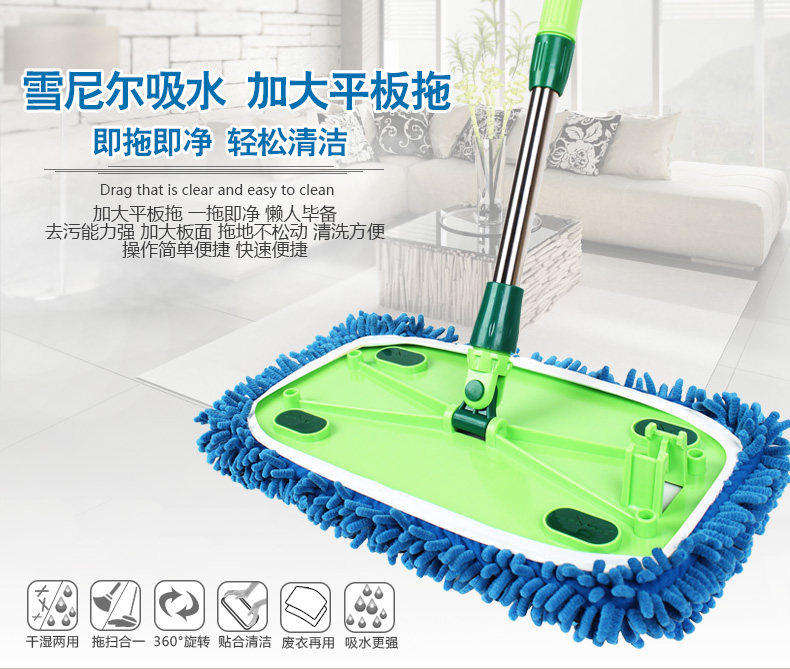 📚 维卡 雪尼尔家用平板木地板吸水懒人大拖把 布套式大号拖把平托把