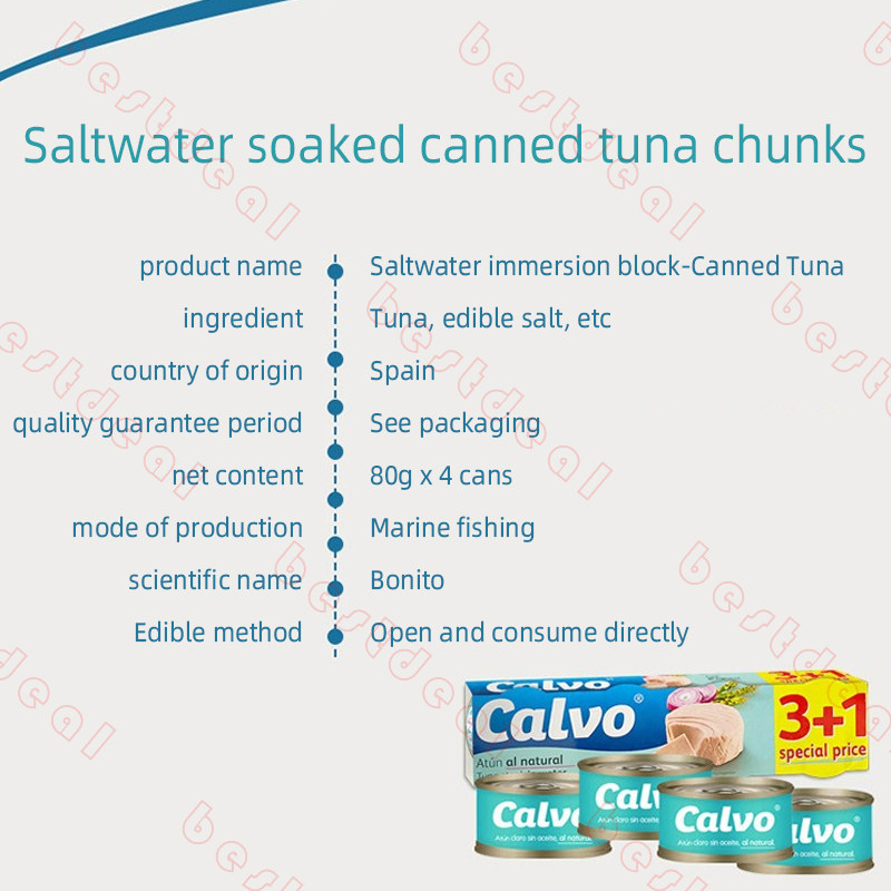📚 80g*4 Calvo Tuna Fish Tuna in Water in Oil 凯芙金枪鱼罐头