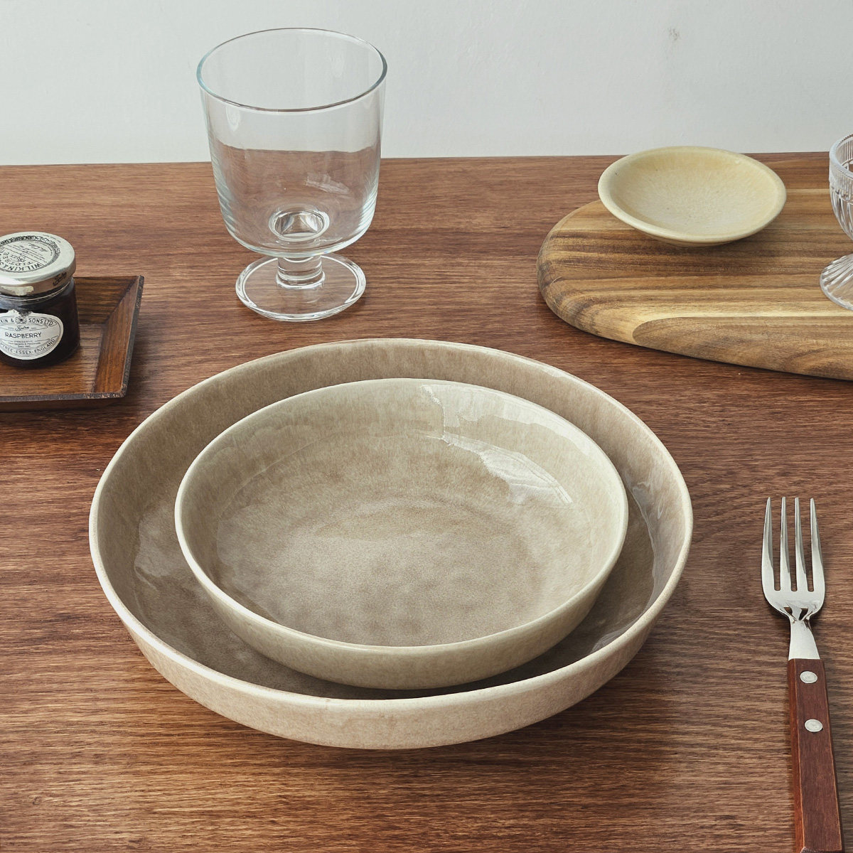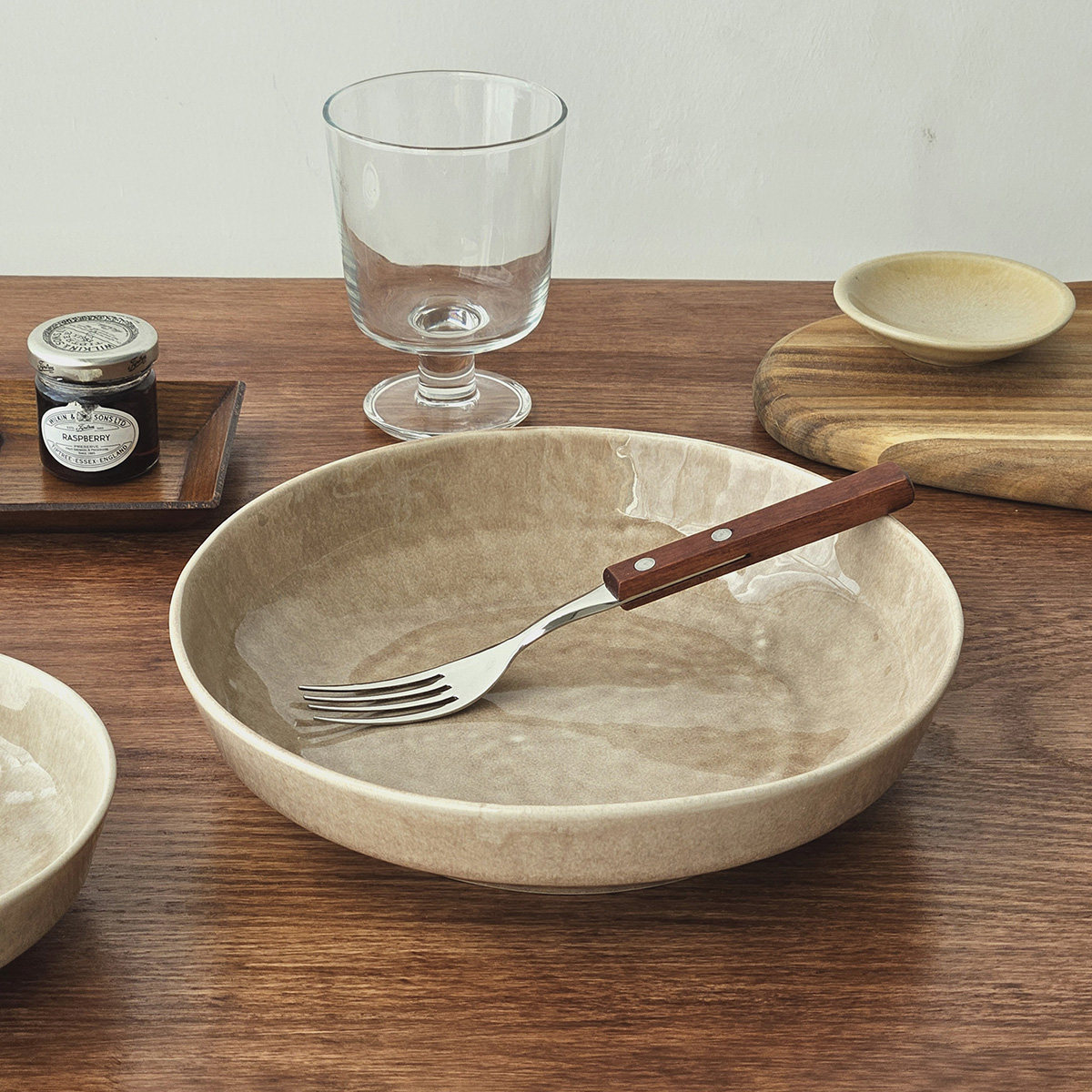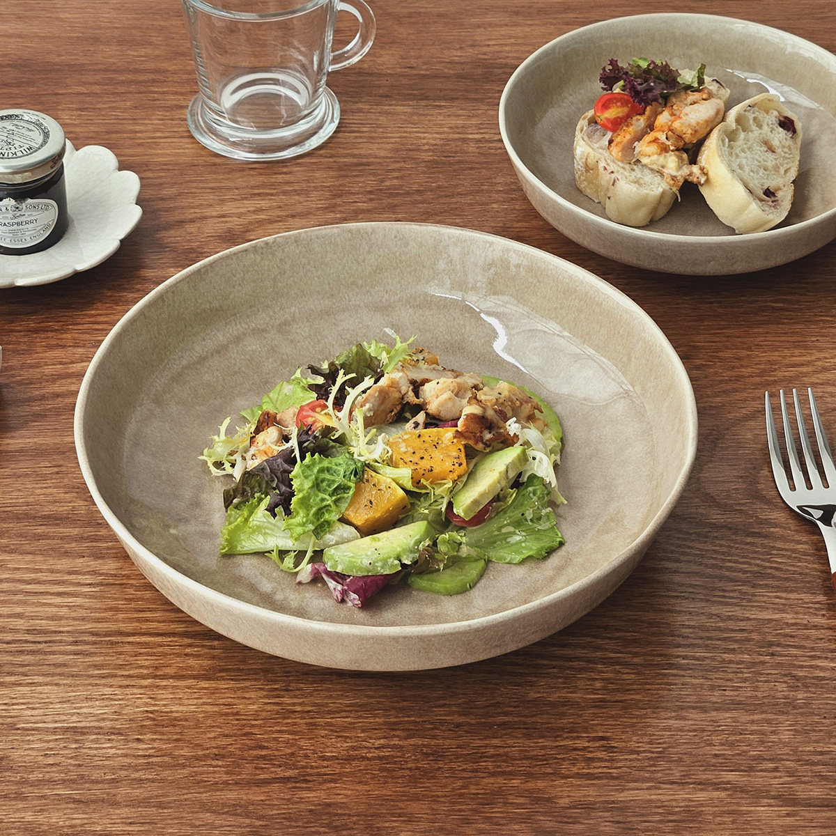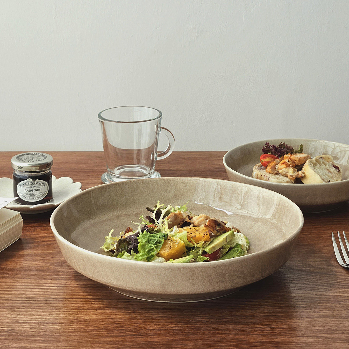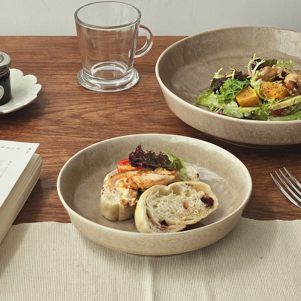 📚 tatanara 日式沙拉碗卡其色手捏感不规则复古意面盘餐厅家用浅碗