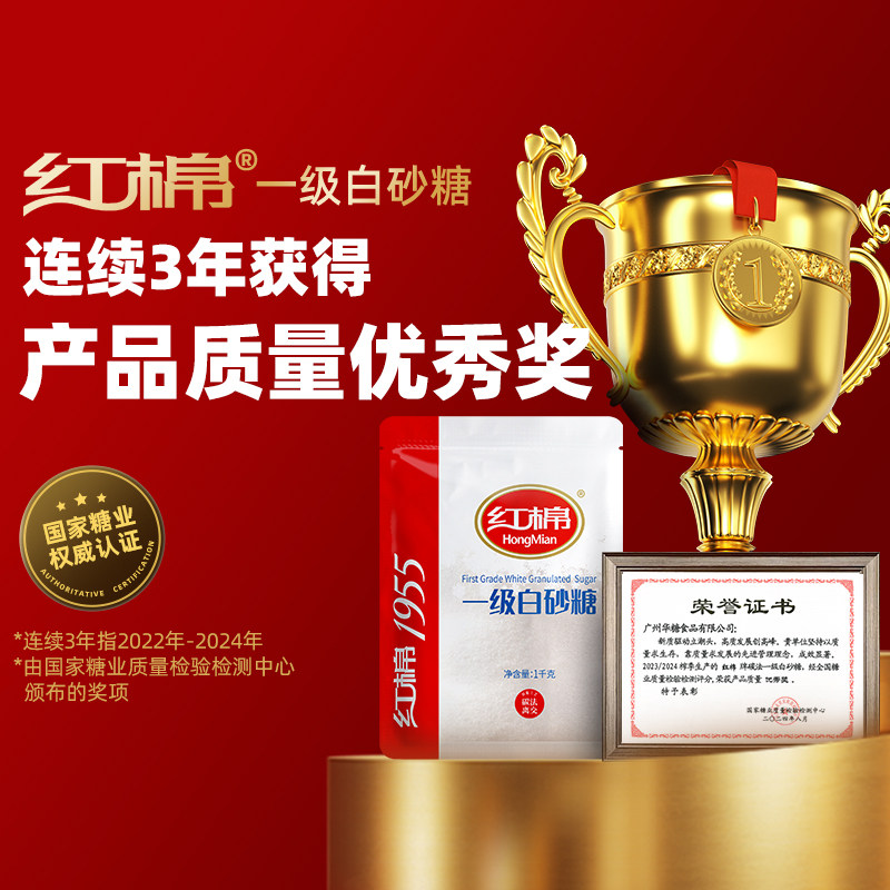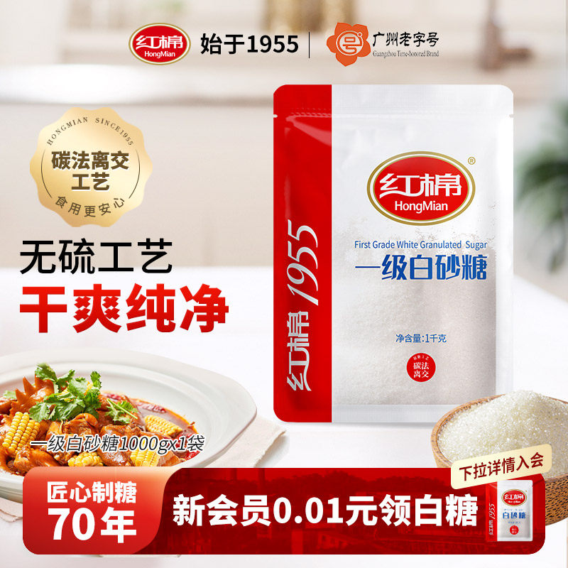 📚 红棉白砂糖2斤装甘蔗白糖官方旗舰店正品家用烹饪调味糖批发白糖