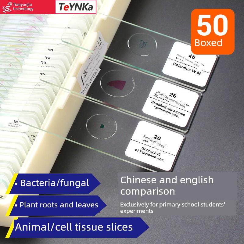 📚 显微镜观察永久标本切片50片装学生教学实验动植物细菌样本载玻片