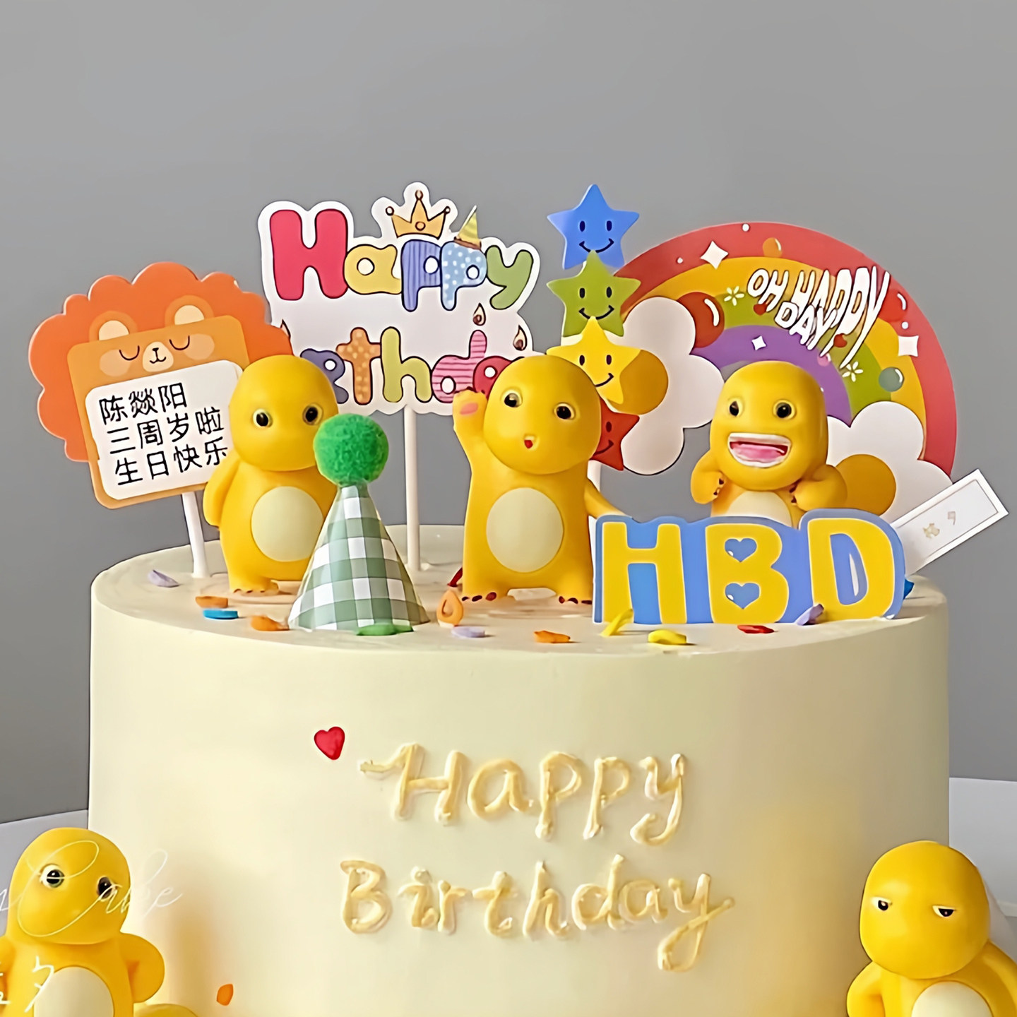 📚 可爱小奶龙蛋糕装饰摆件儿童玩偶手办韩式爱心蜡烛生日甜品插件