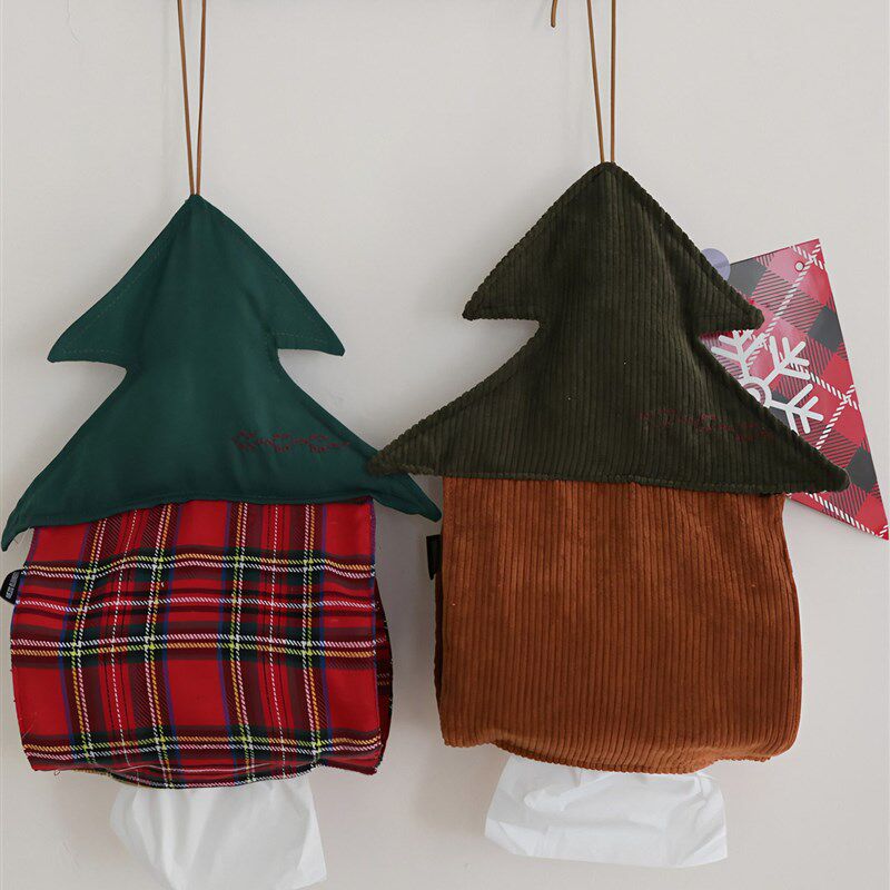 📚 新款圣诞树可挂式纸巾盒可爱布艺装饰纸巾袋圣诞节创意车载纸巾套