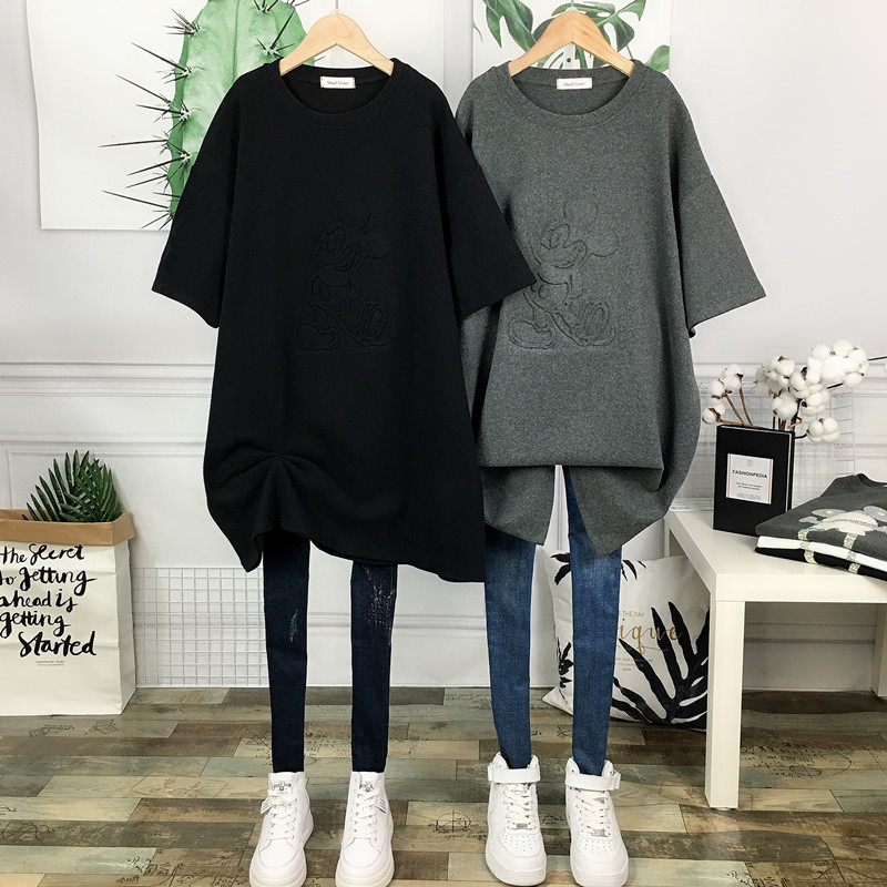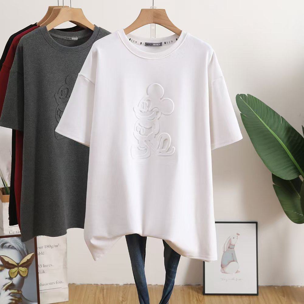 📚 磨毛T恤女短袖新款韩版宽松加厚凹凸印内搭洋气简约打底衫女秋冬