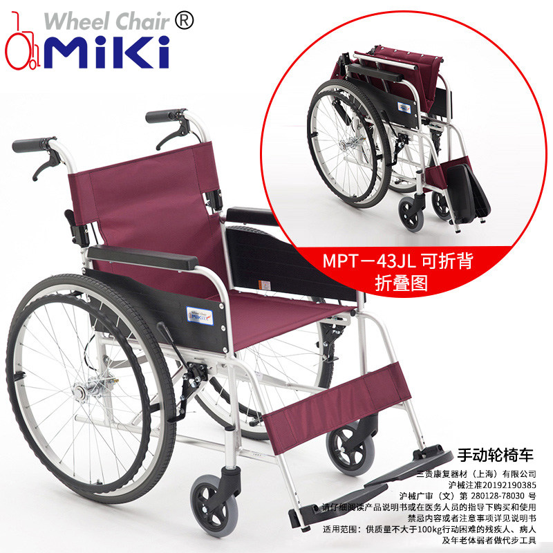 📚 日本MIKI轮椅MPT-43JL折叠轻便小型轮椅老人专用代步车残疾人轮椅