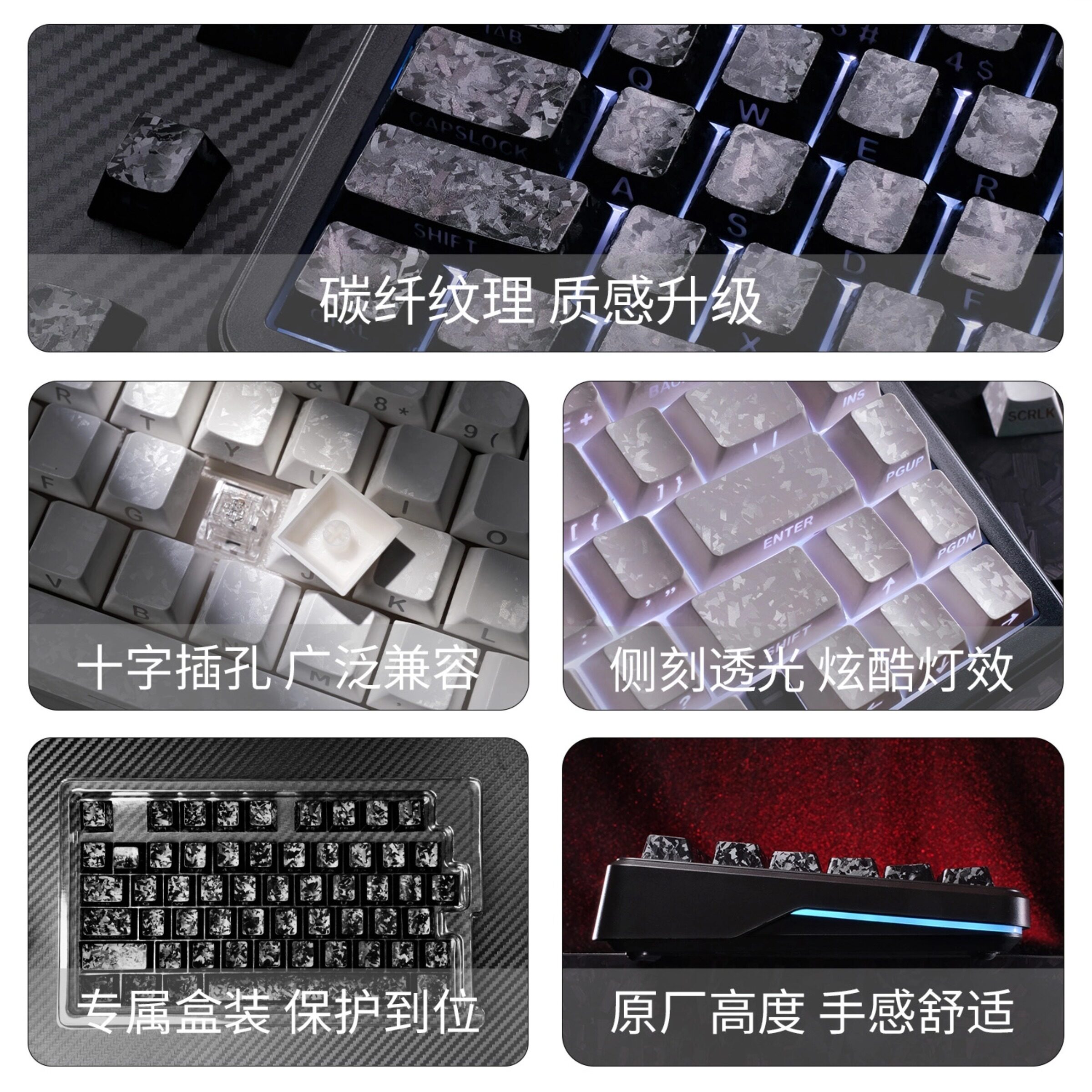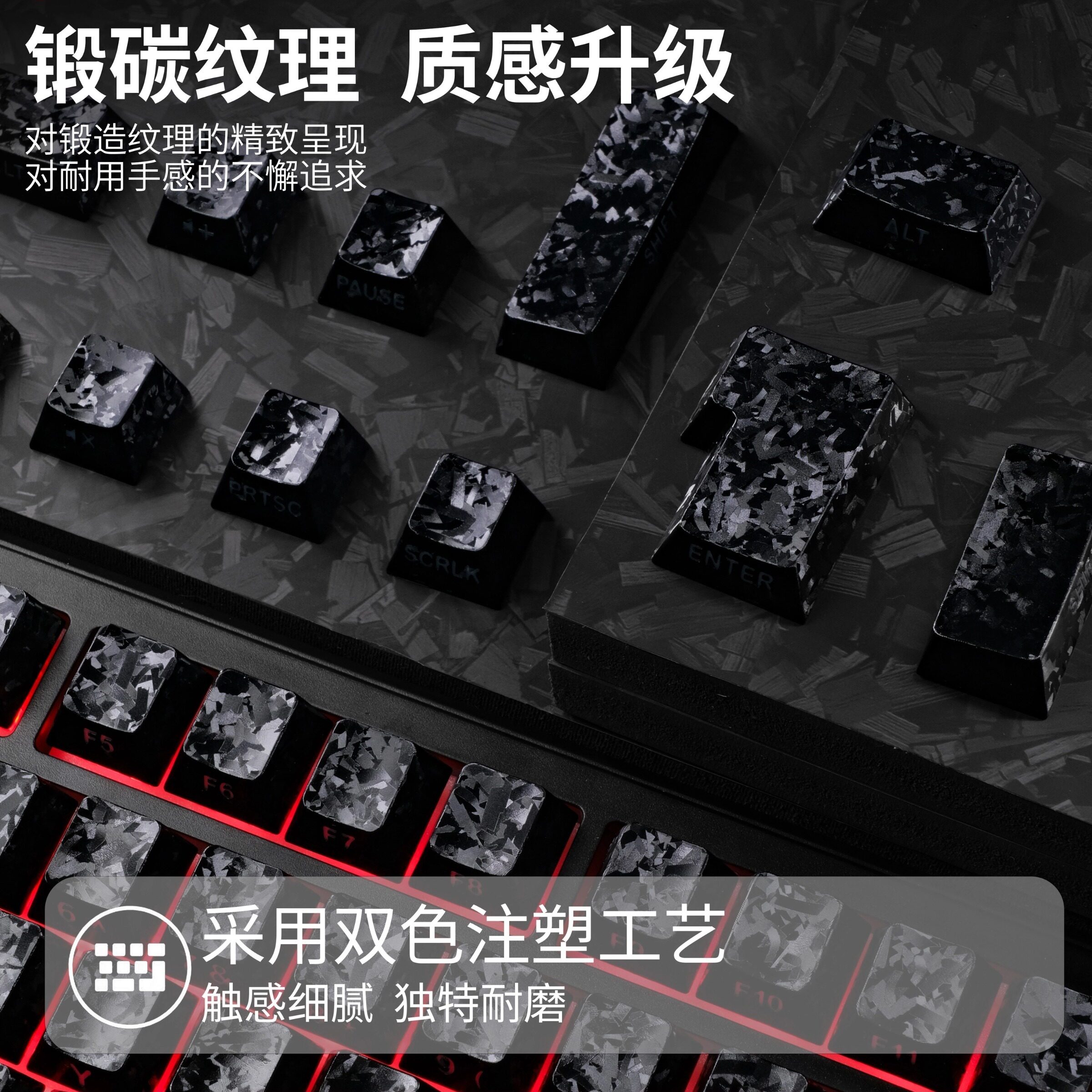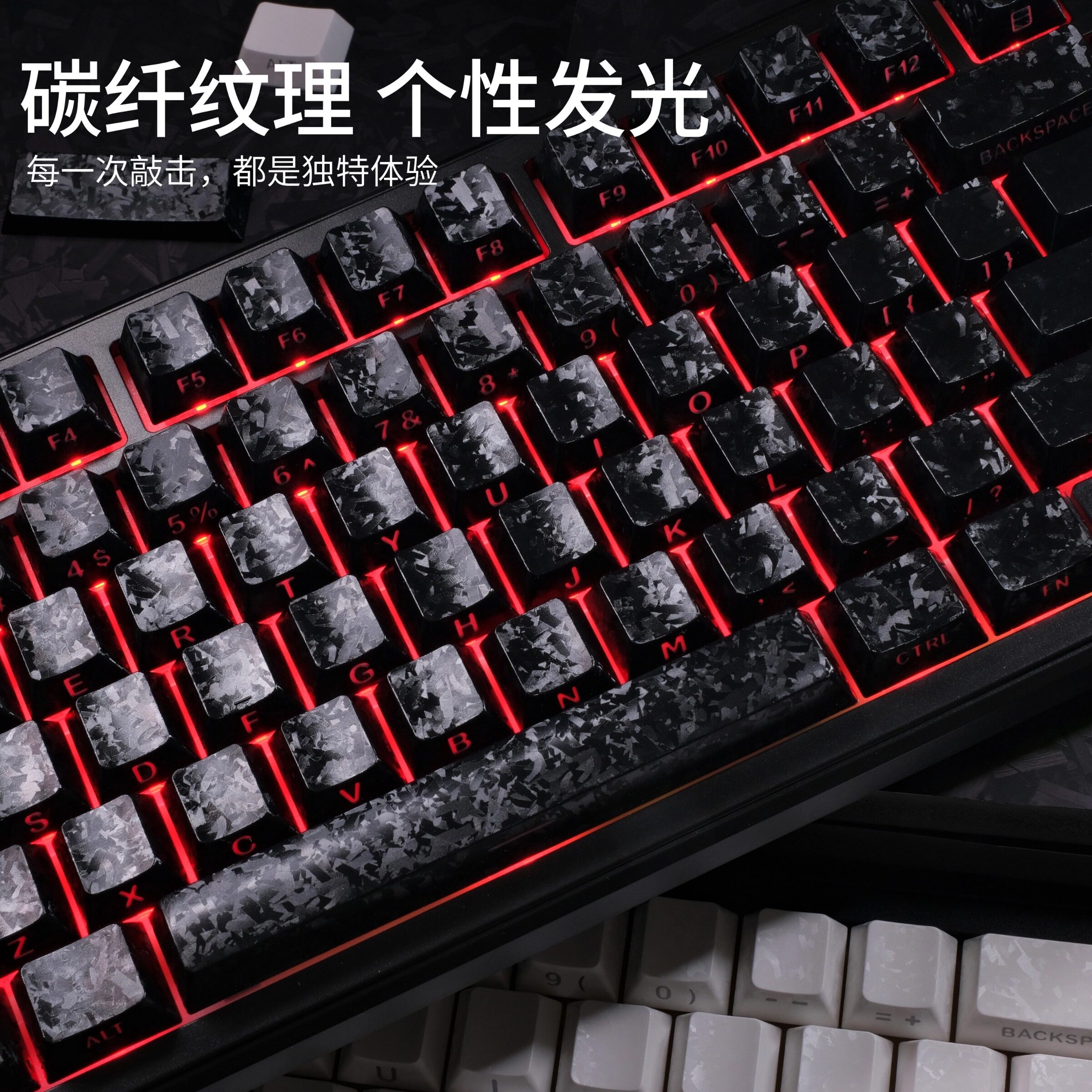 📚 碳纤维纹2.0锻碳纹键帽 侧刻透光字符 白色热升华原厂键帽