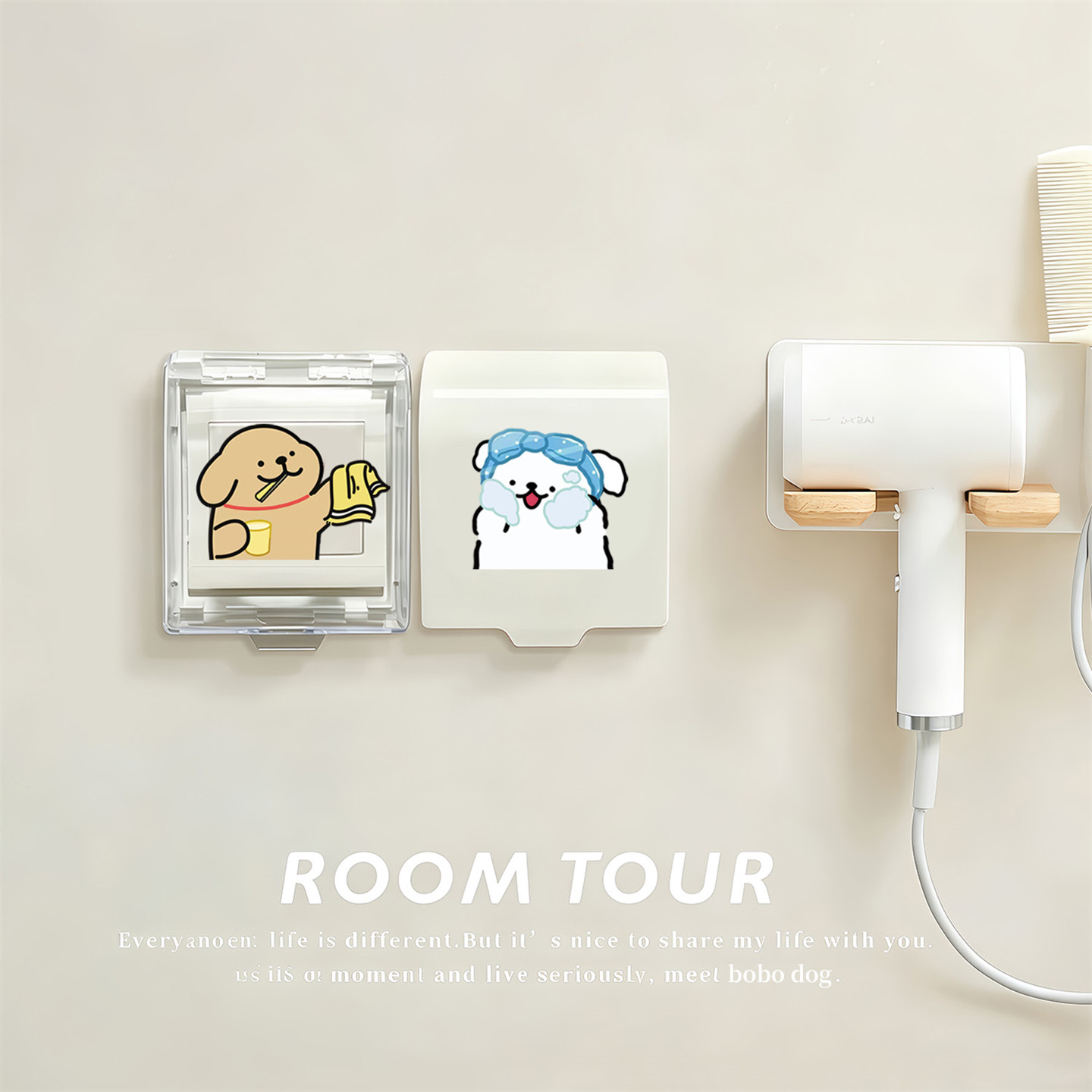 📚 卫生间开关插座面板防水罩防溅盒粘贴式可爱浴室防水开关保护盒盖