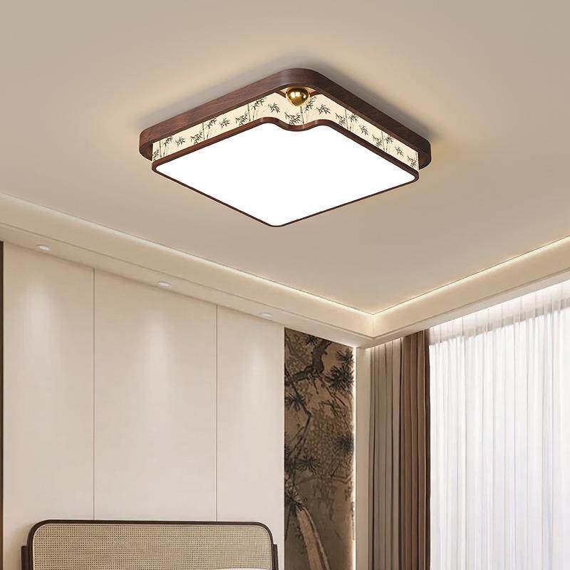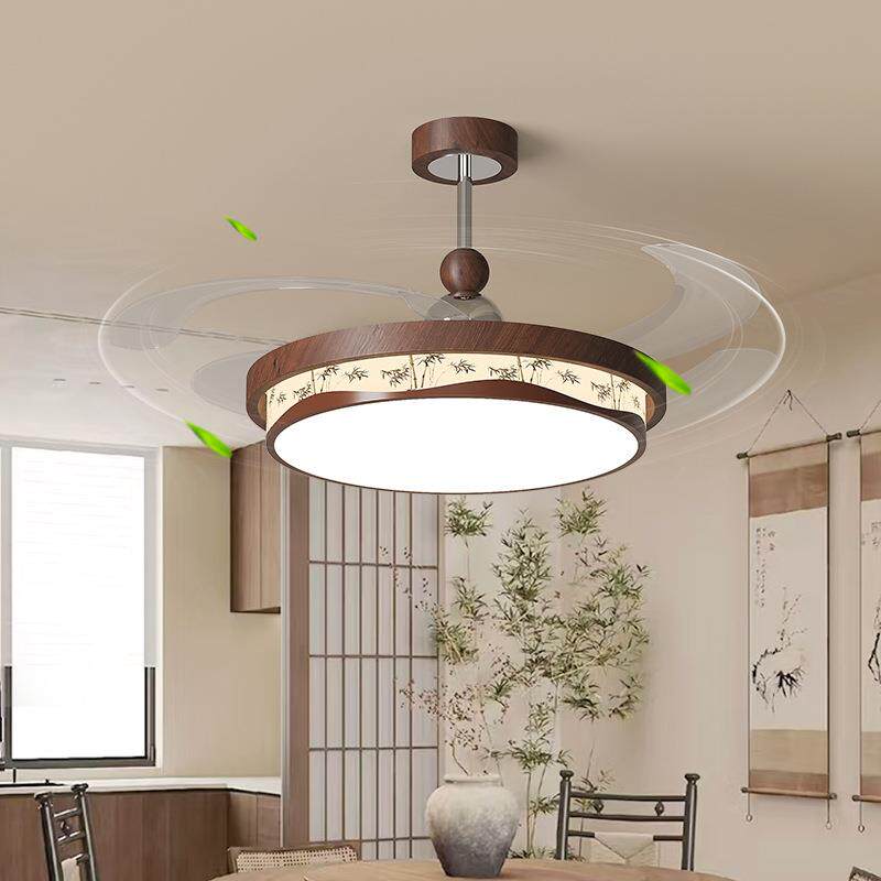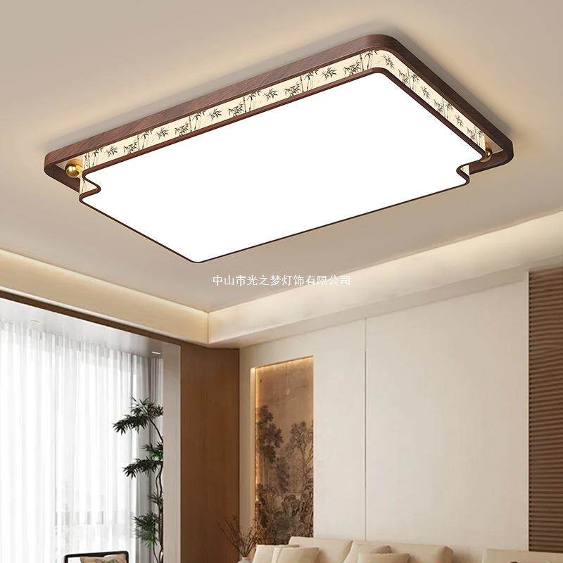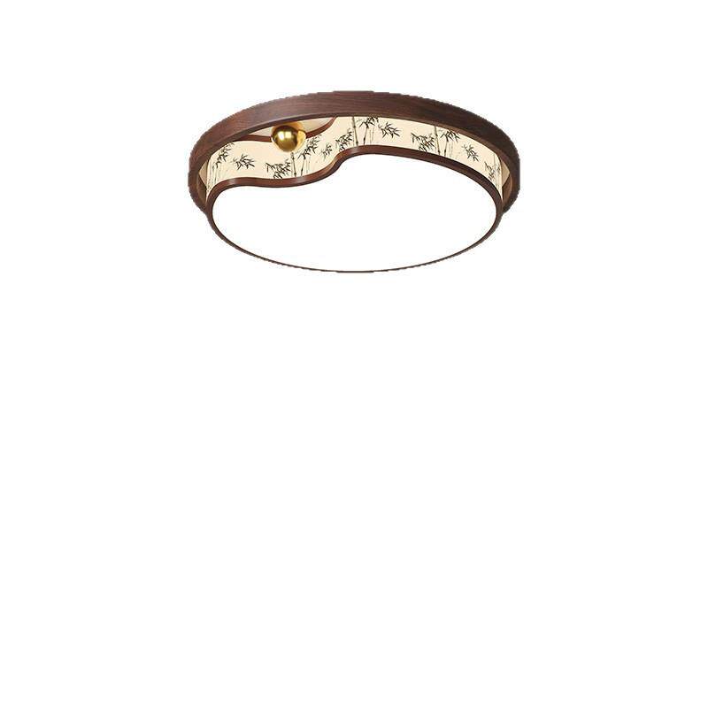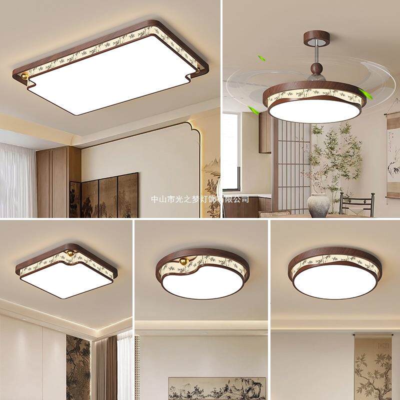 📚 宋氏美学客厅主灯中古风复古胡桃木色卧室灯实木印花布艺餐厅吊灯