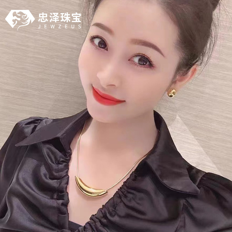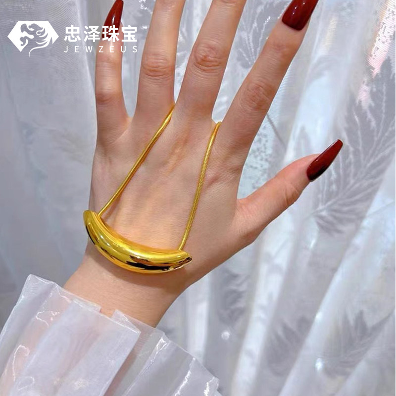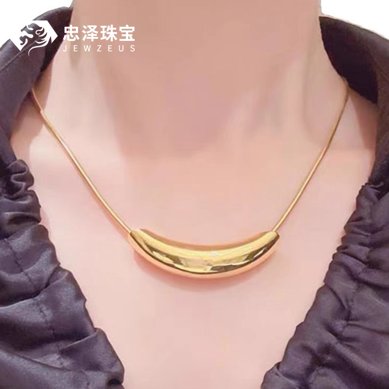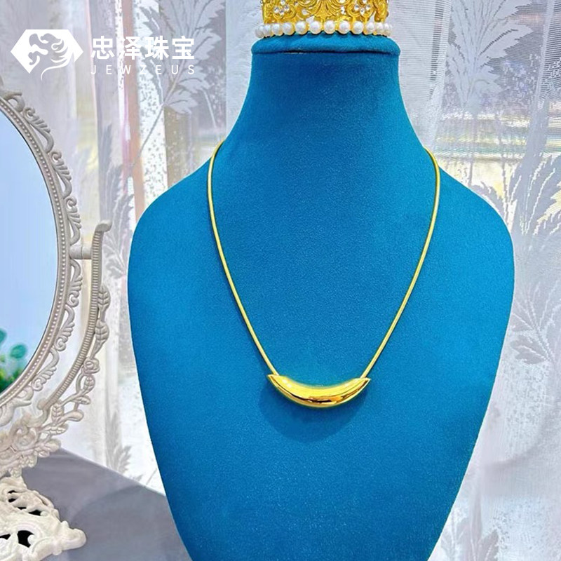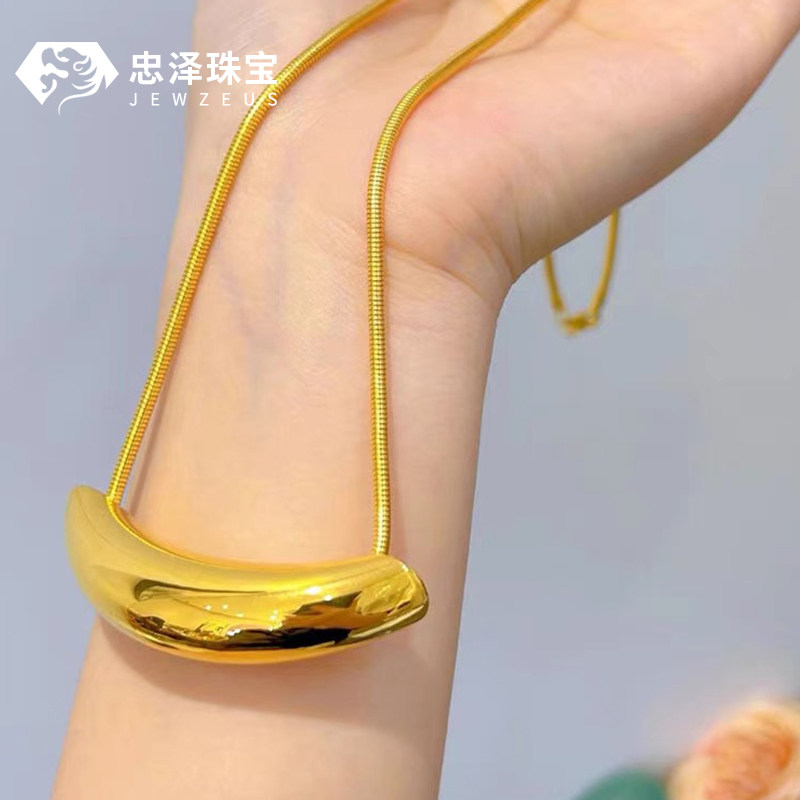 📚 黄金弯管吊坠女999足金5D无氰牛角项链ins风时尚百搭毛衣链锁骨链