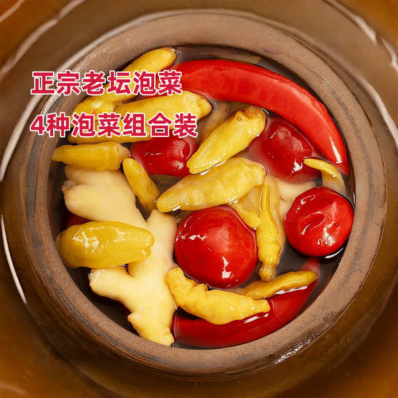 📚 四川辣三宝泡姜泡椒组合泡菜泡仔姜泡二荆条红辣椒泡小米辣野山椒