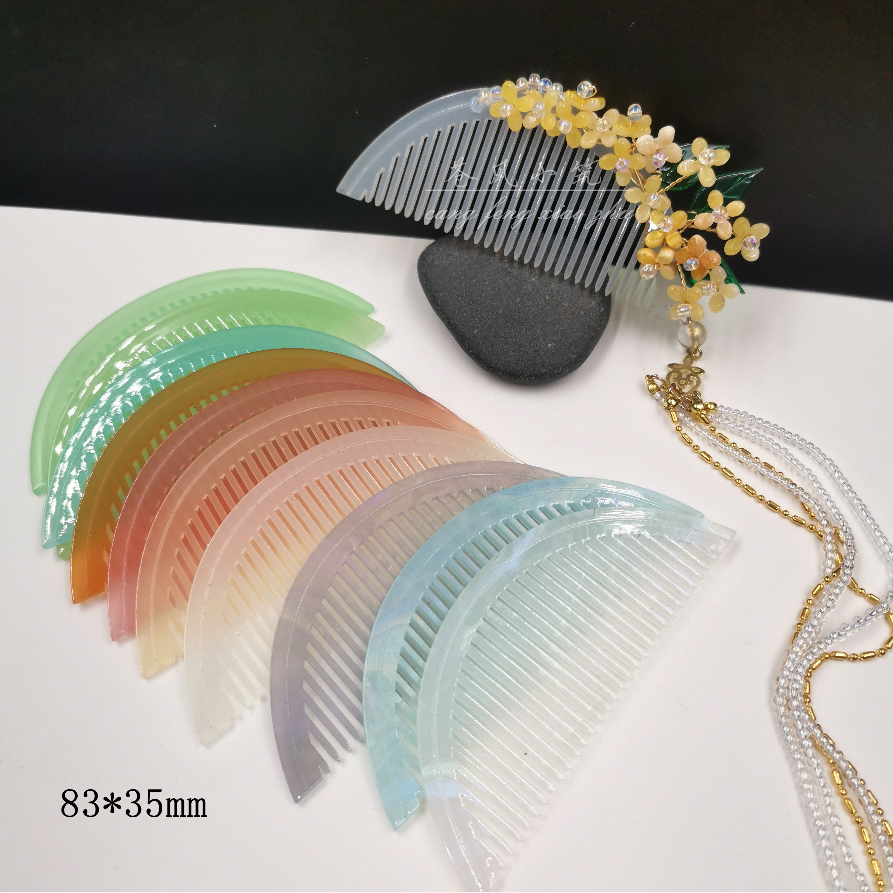📚 醋酸仿玉 发梳子 手工DIY 古风日常上头轻便 掩鬓插梳 汉服头饰
