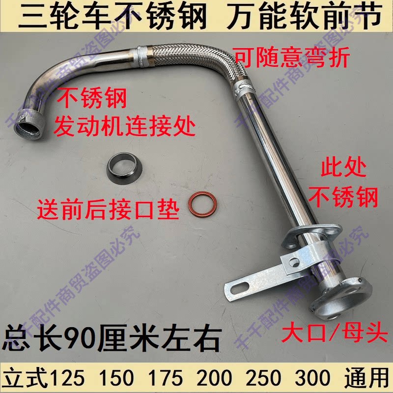 📚 宗申三轮摩托车福田隆鑫排气管125-150-175-200通用型软管前节