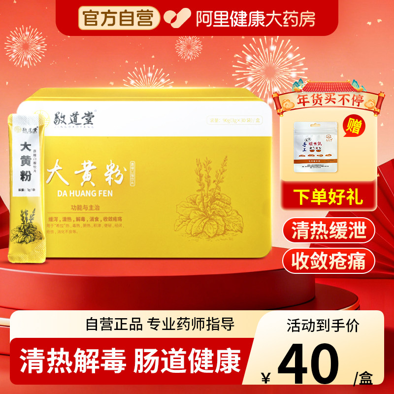 📚 敬道堂大黄粉3g*30袋清热泻火解毒消食用于潮热便秘经闭疮伤饮片