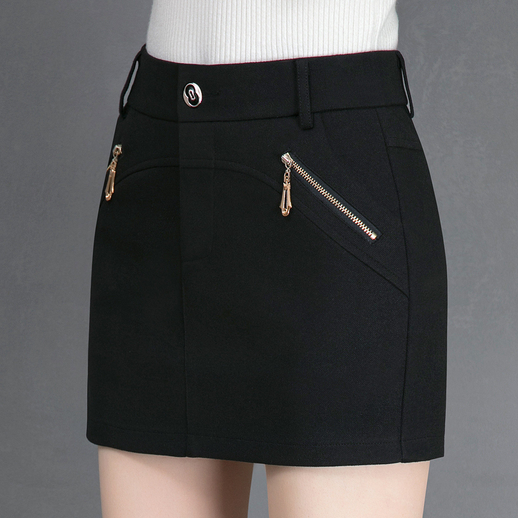 📚 秋冬毛呢短裤裙女百搭大码弹力显瘦包臀裙前裙后裤短裙裤外穿靴裤