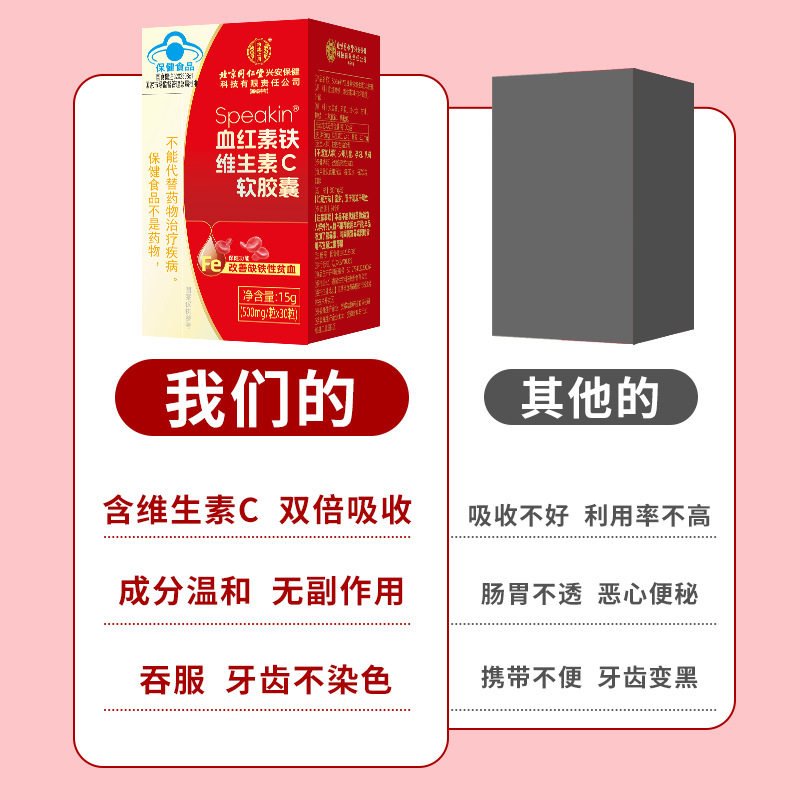 📚 北京同仁堂内廷上用speakin血红素铁维生素C软胶囊女性改善缺铁贫