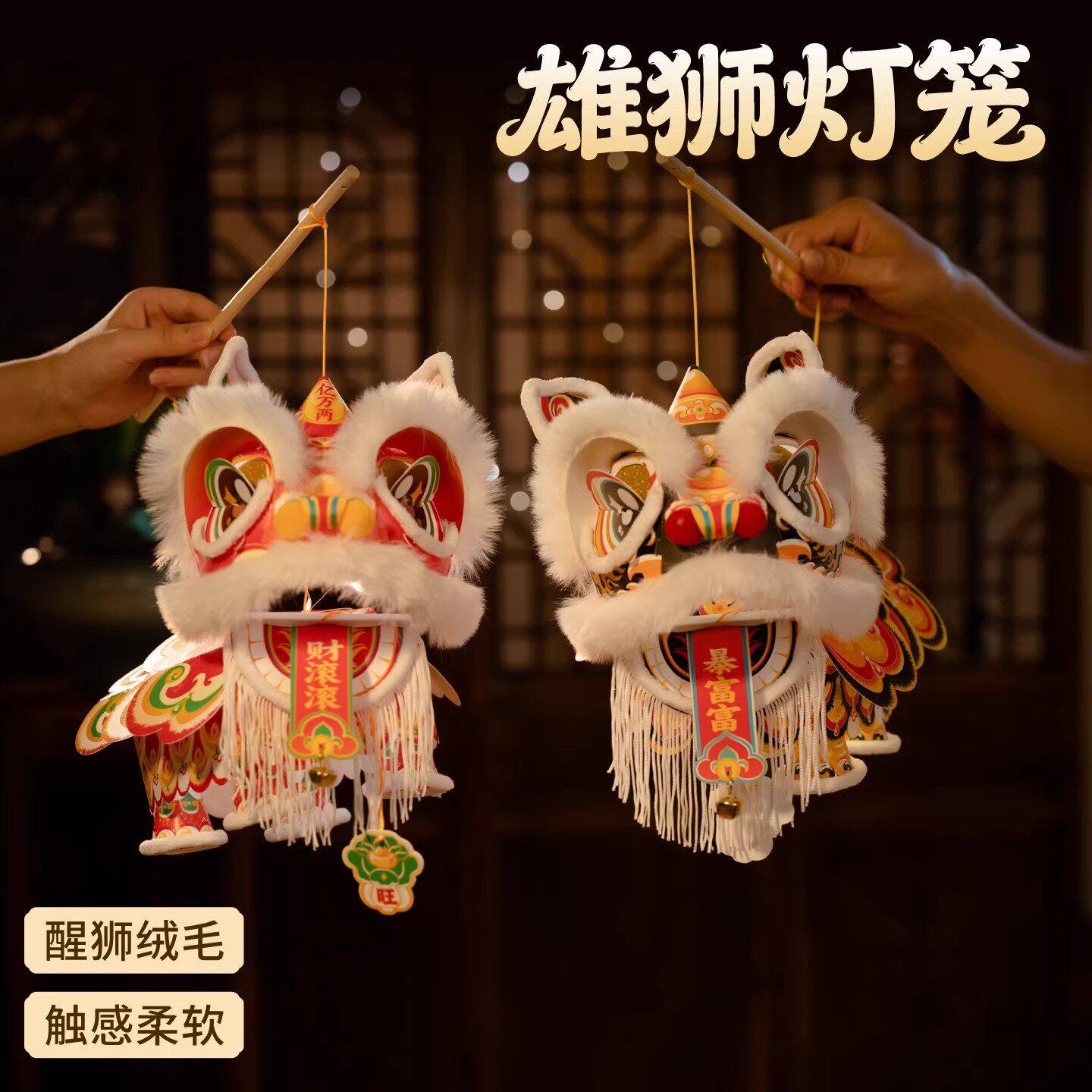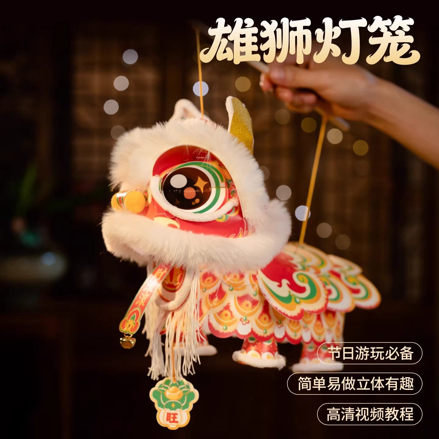 📚 2026马年新款醒狮灯笼手工diy国潮灯儿童手提绳发光狮子新年花灯