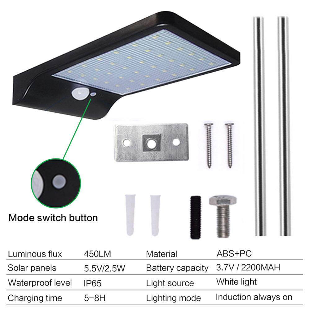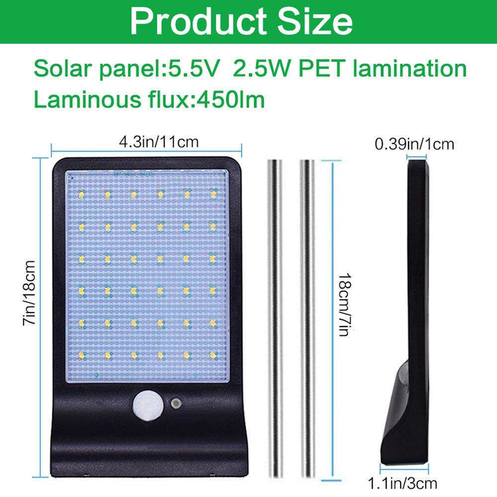 📚 户外太阳能壁灯36Led运动感应防水灯花园路灯3模式高亮白光跨境单