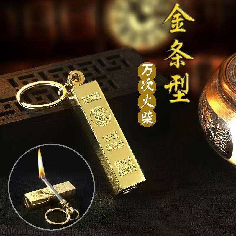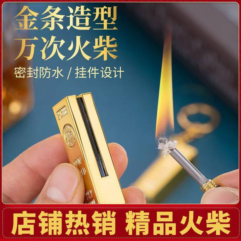 📚 一辈子用不完万次火柴打火机锌合金金条点火器防风防水钥匙扣