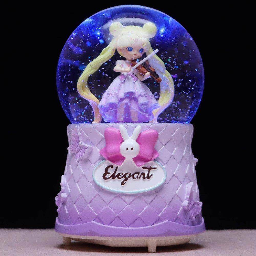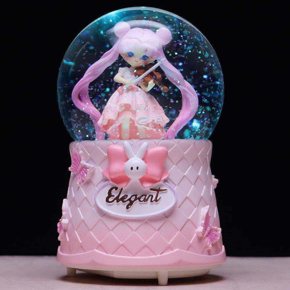 📚 内旋发光旋转飘雪提琴女孩水晶球公主音乐盒女孩朋友儿童节日礼物